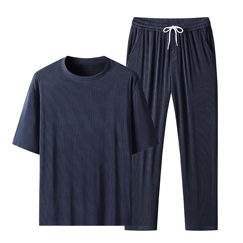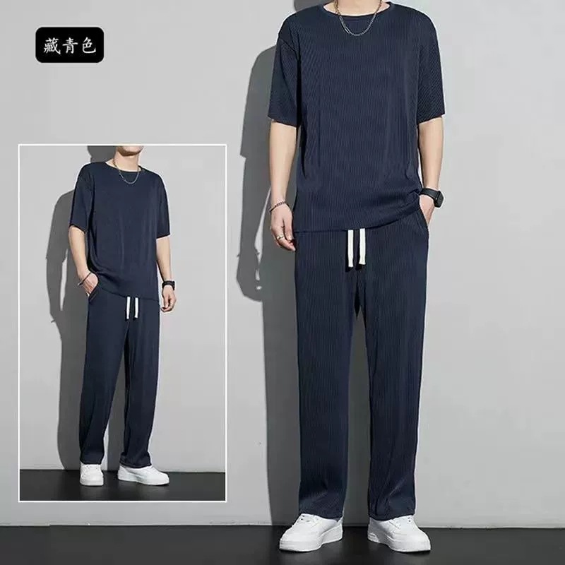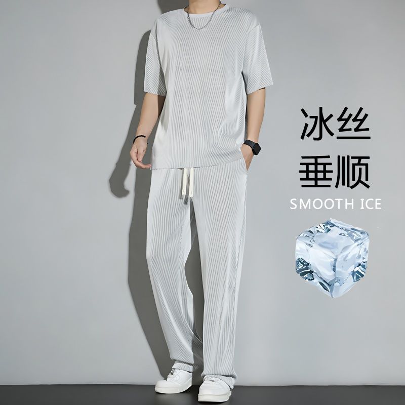 아이스 실크 스포츠 세트 남자 여름 얇은 반팔 티셔츠 빠른 건조 캐주얼 긴 바지 반팔 옷 세트 착용스토어 가기