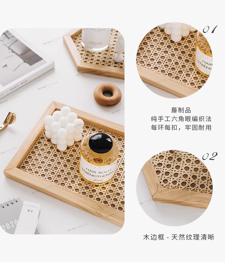 일본식 원목 수납 트레이 수제 라탄 수납함 사진 소품 화장품 차 세트 트레이 정리함스토어 가기