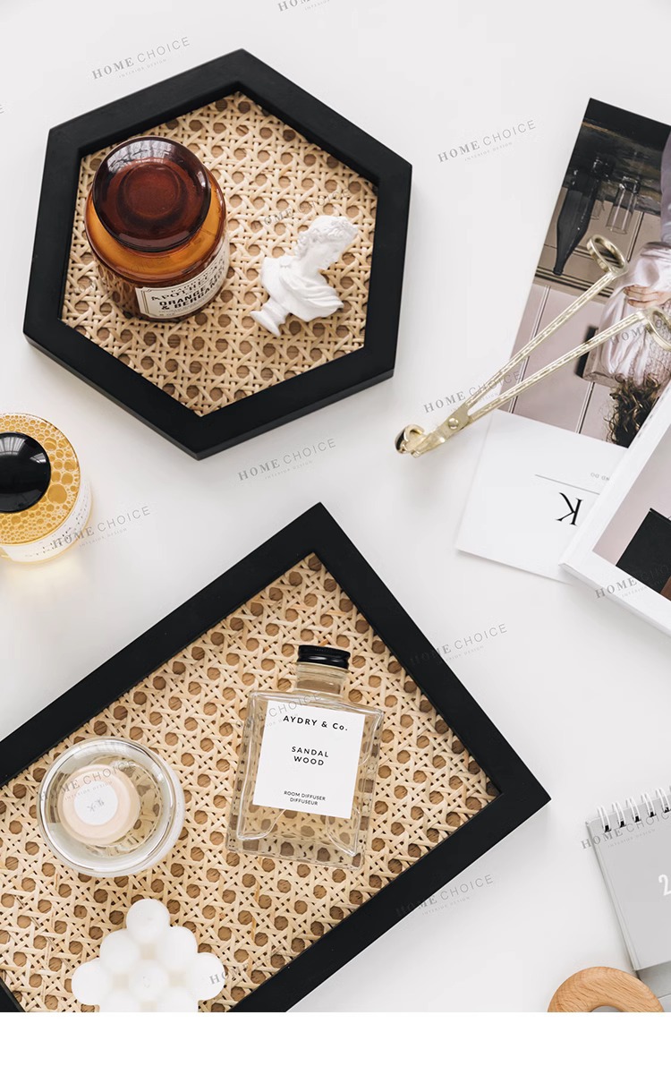 일본식 원목 수납 트레이 수제 라탄 수납함 사진 소품 화장품 차 세트 트레이 정리함