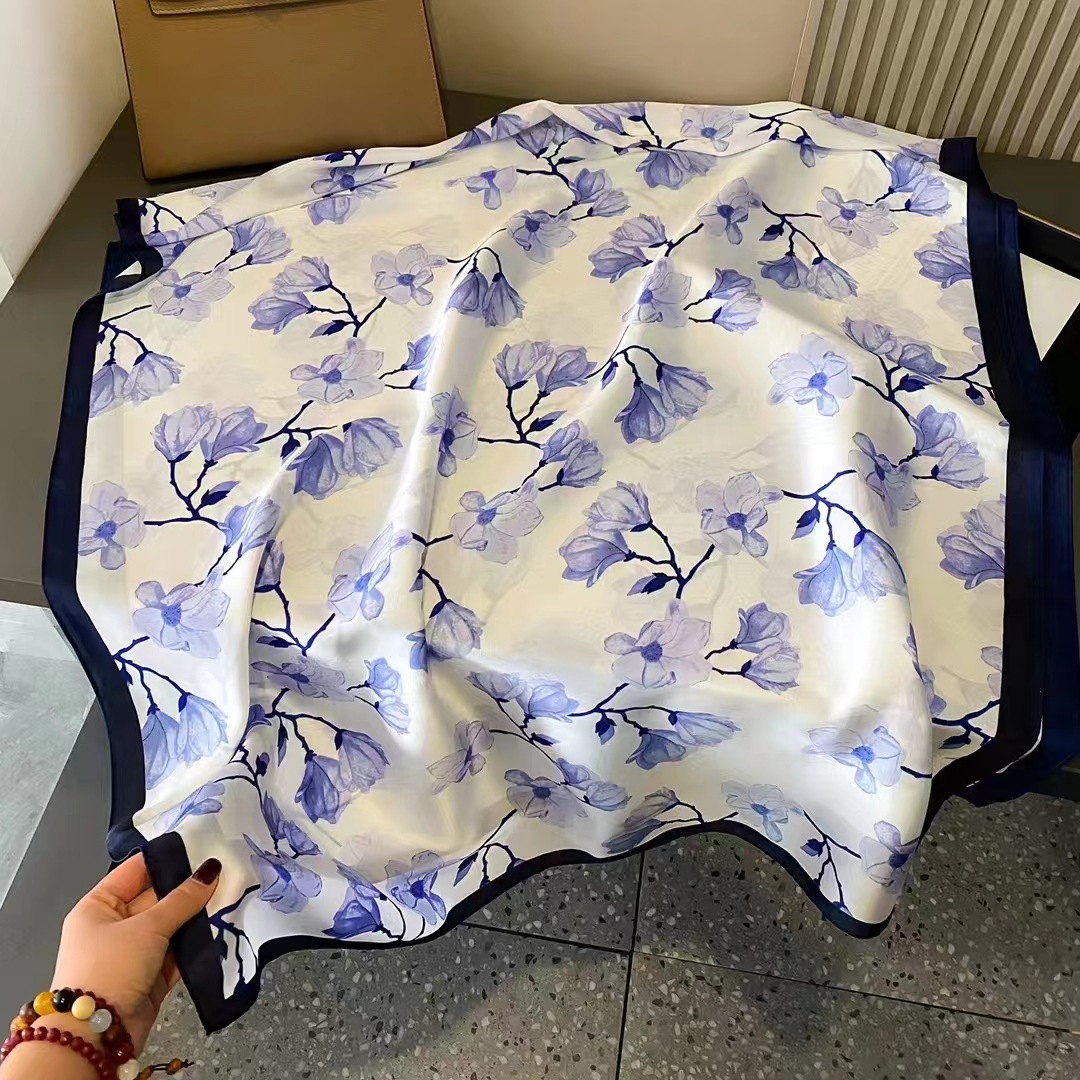 봄, 여름, 가을 새로운 한국식 실크 스카프 여성의 장식 조커 숄 자외선 차단제 비치 타월 라이브 배치 발견스토어 가기