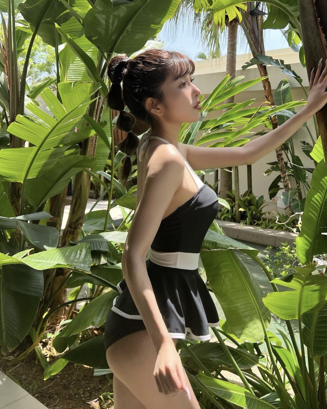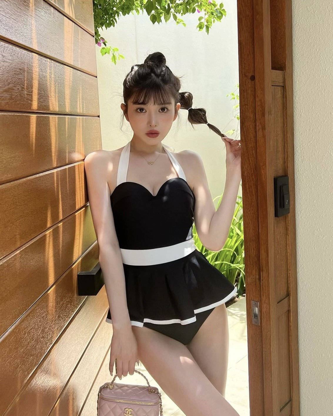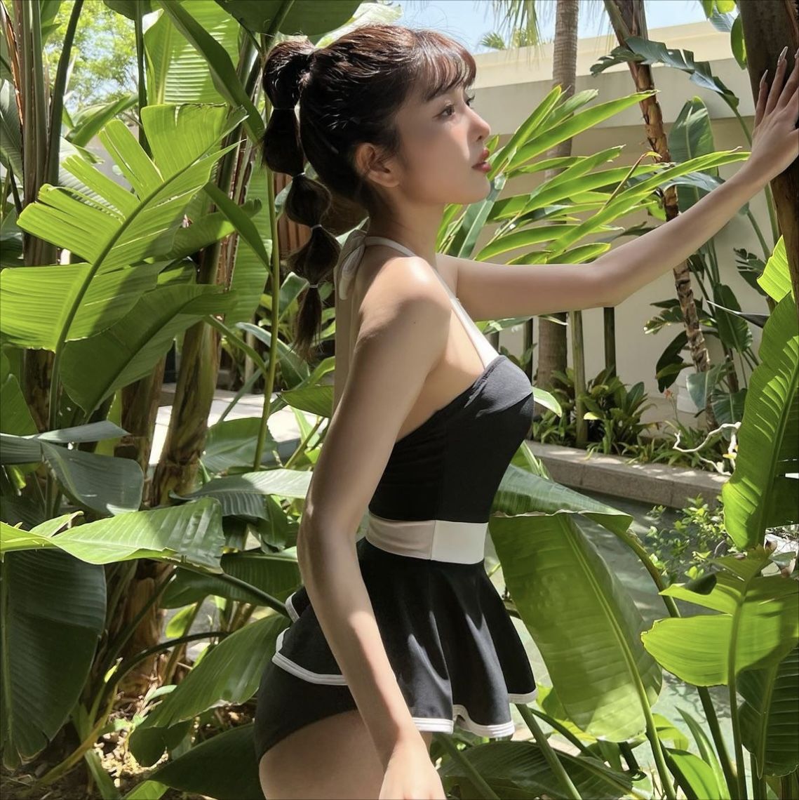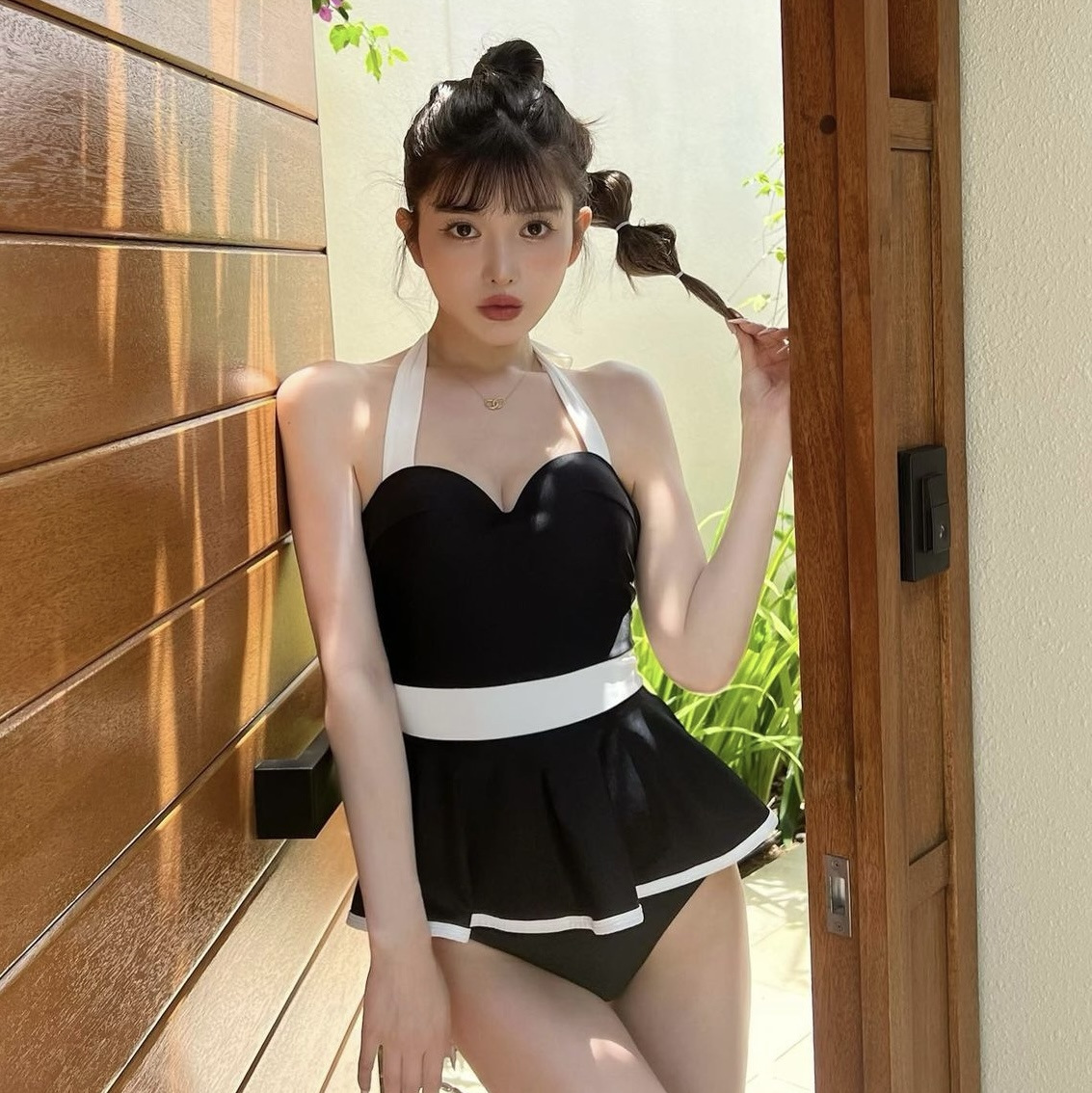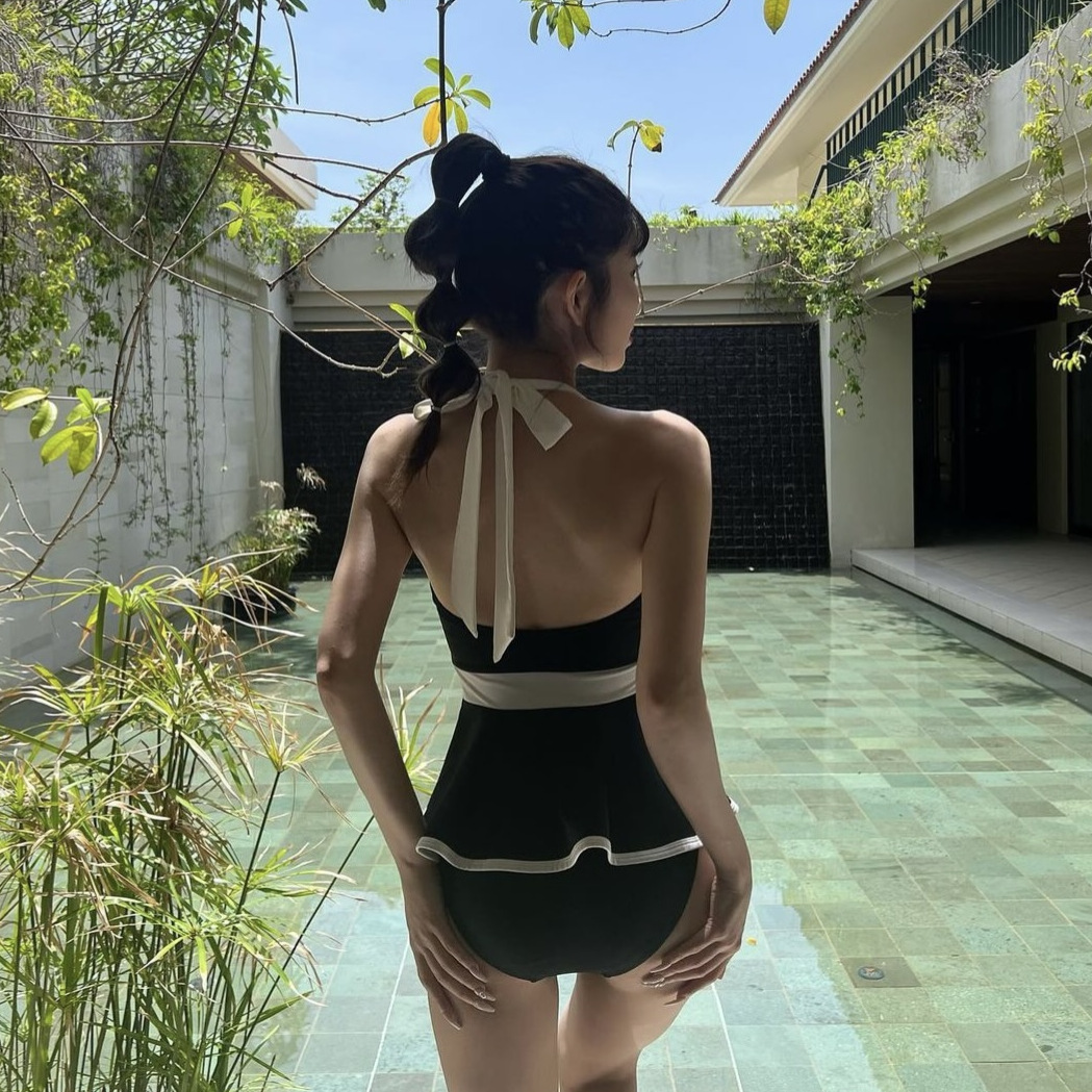 2024 새로운 섹시한 소녀 대비 컬러 원피스 원피스 고삐 등이없는 온천 수영복 여성 국경 공장 도매