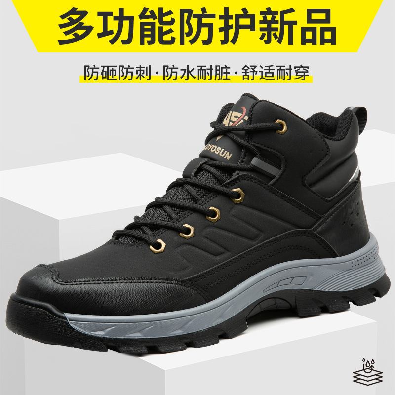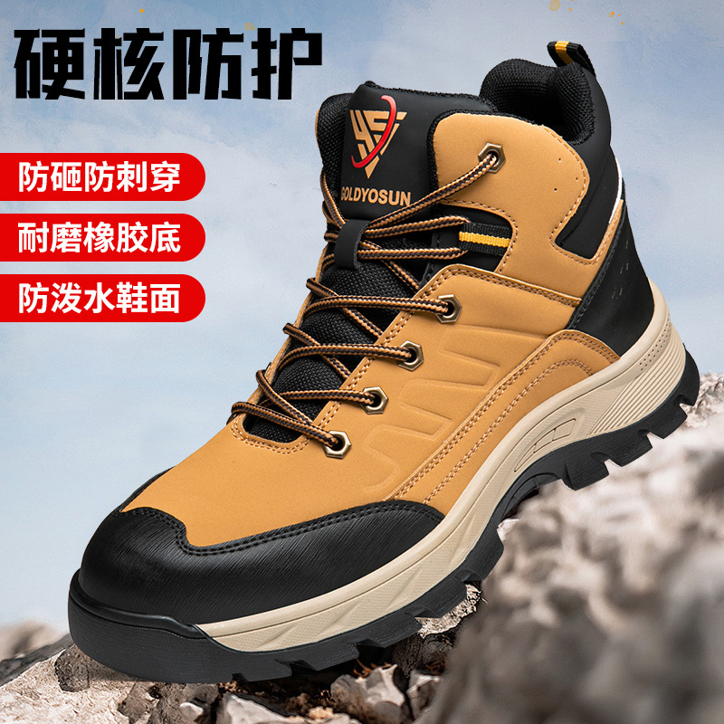 2024 새로운 안전 신발 안티 스매싱 안티 피어싱 미드 탑 안전 신발 내마모성 미끄럼 방지 등산 통기성 포시즌 보호 신발스토어 가기