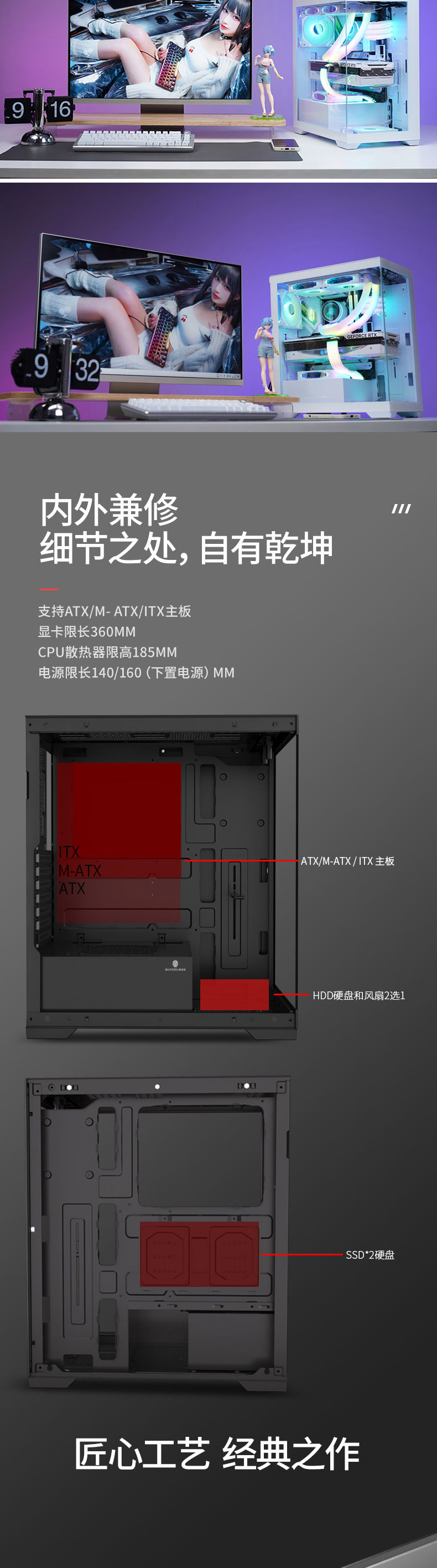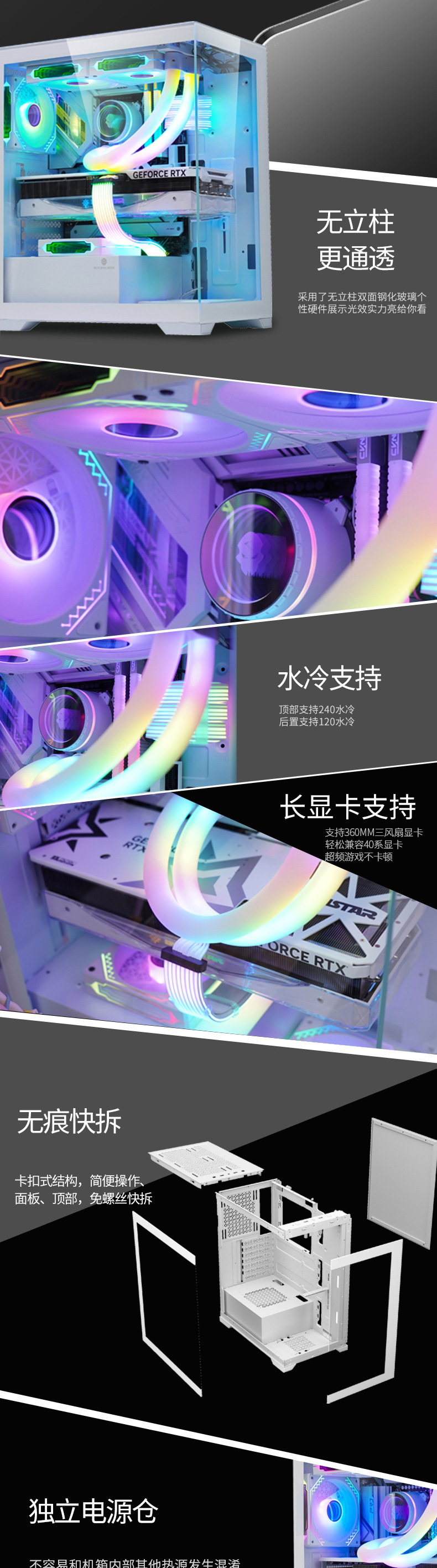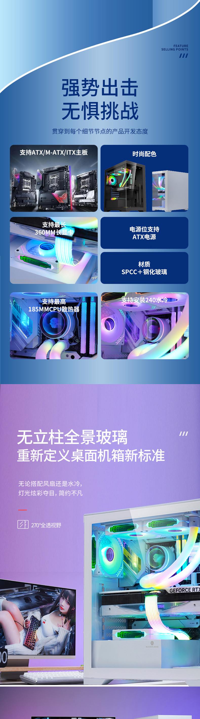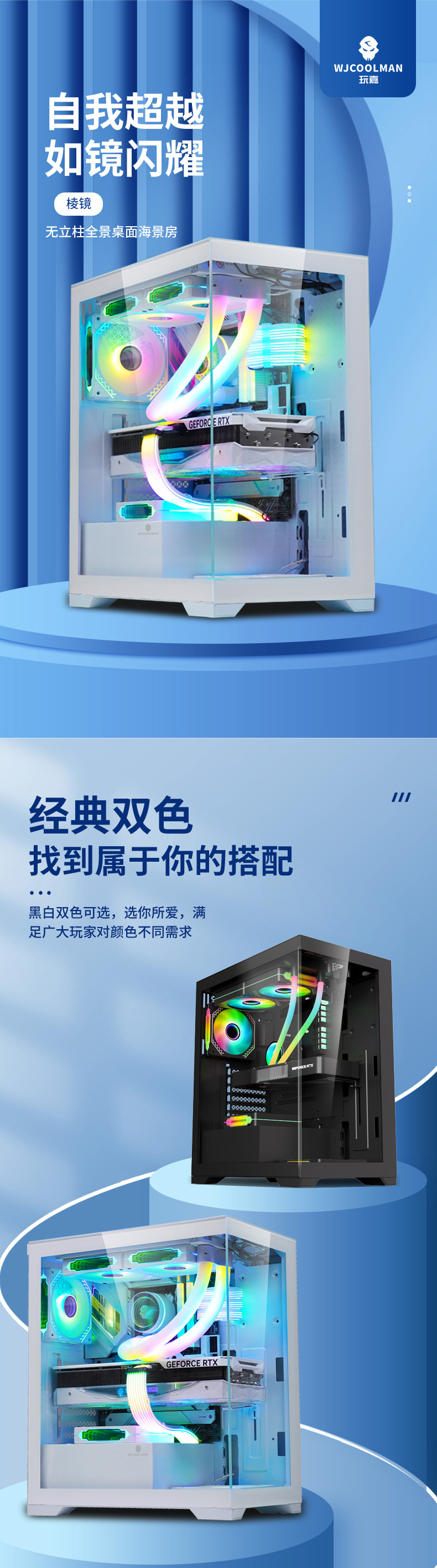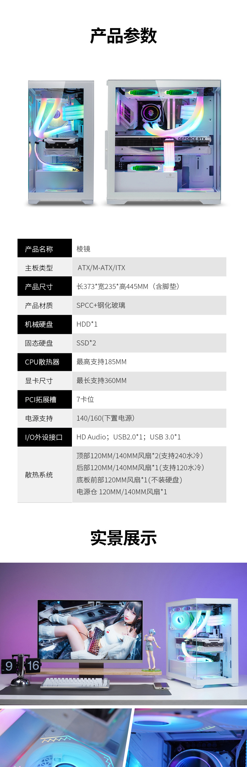 棱镜无立柱全景桌面海景房电脑机箱ATX 7槽扩展台式机箱
