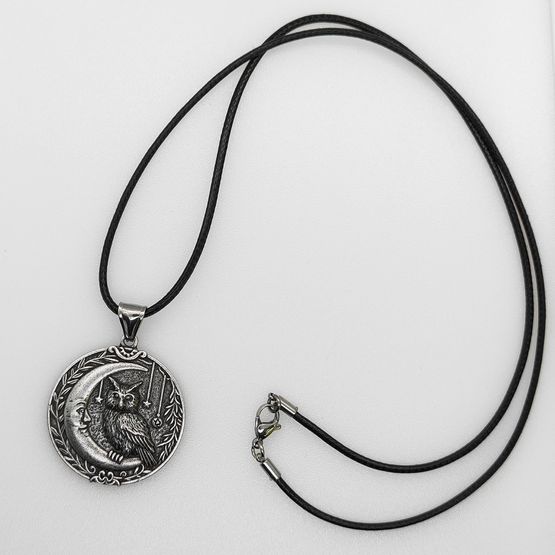 빈티지 올빼미와 달 마법 펜던트 수제 천체 합금 목걸이 유니섹스 골동품 실버 매력