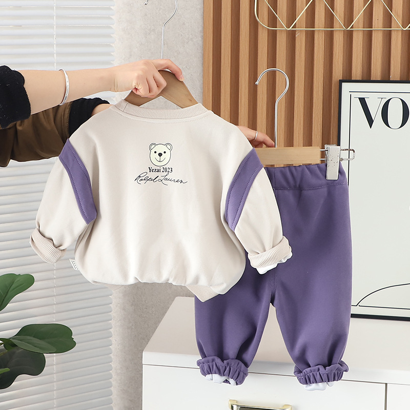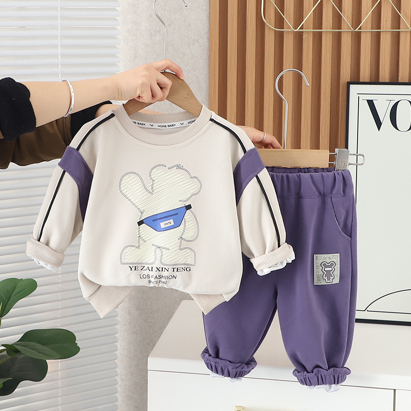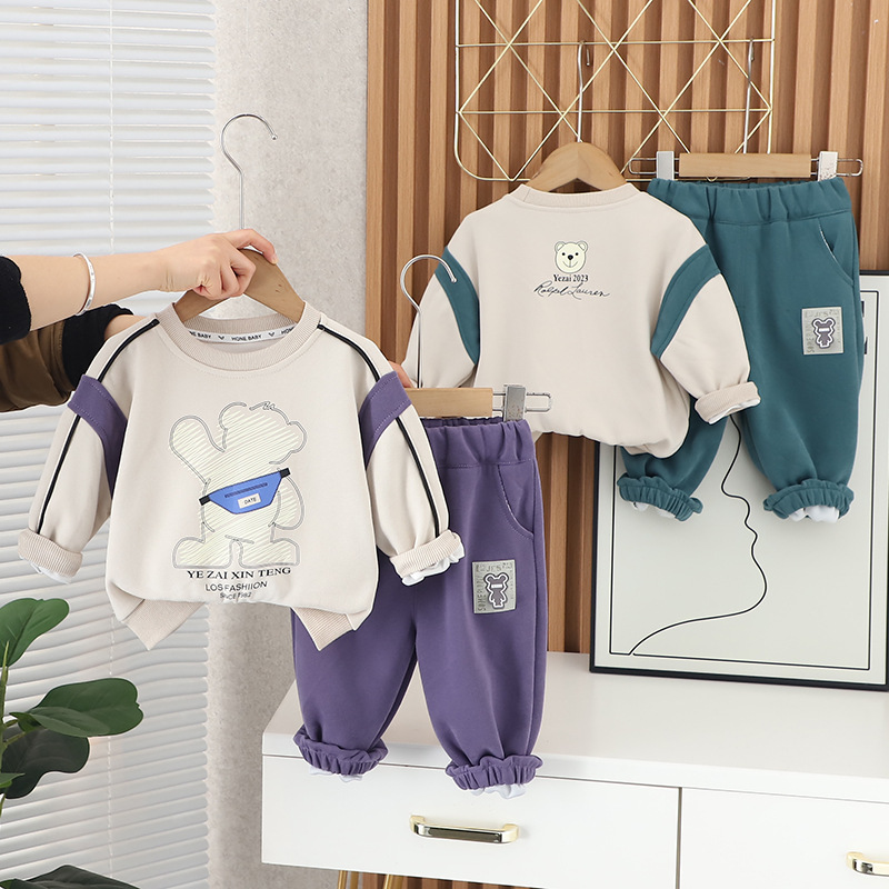 소년 봄 새로운 만화 인쇄 둥근 목 스웨터 봄과 가을 긴 소매 세트 캐주얼 투피스 세트 공장 도매스토어 가기