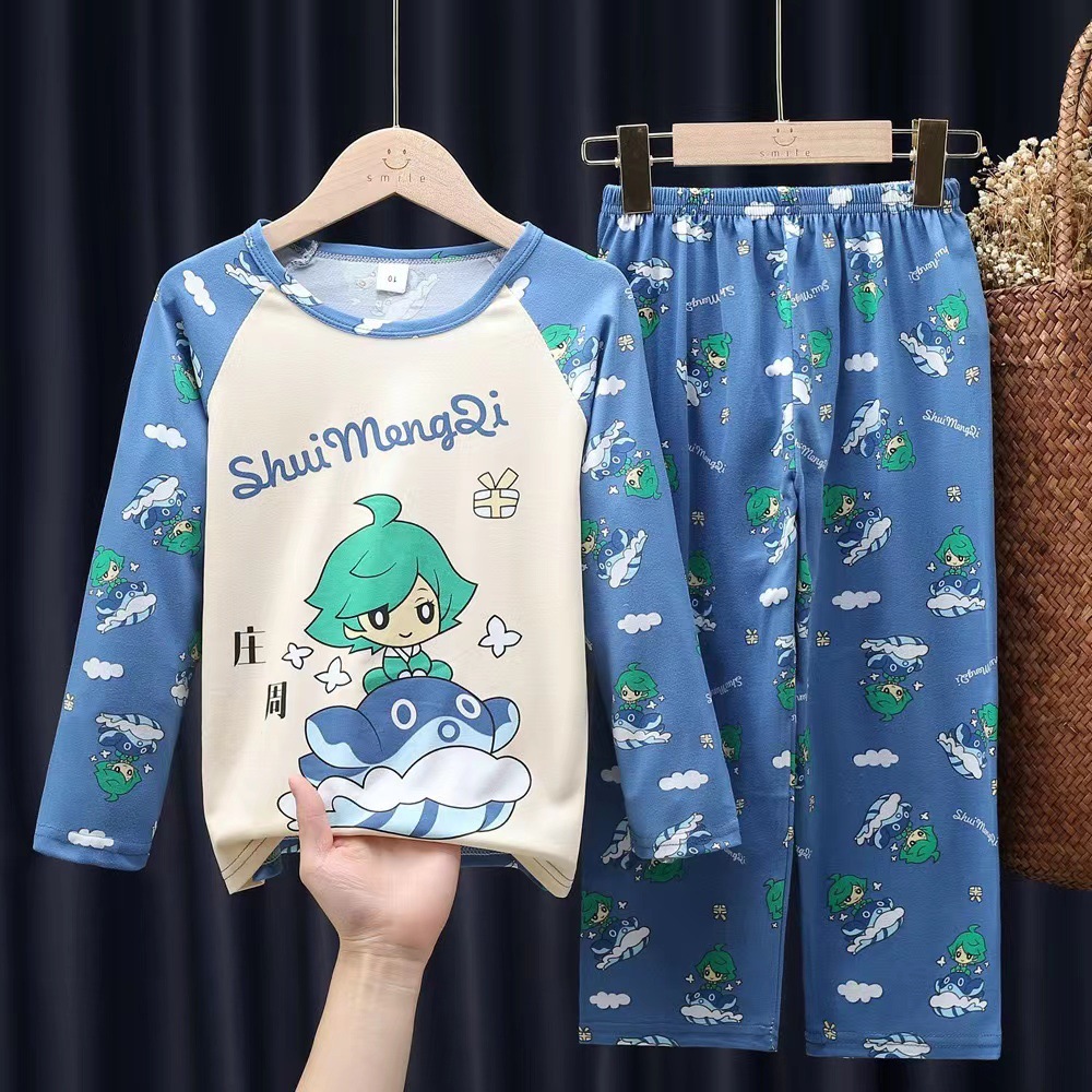 어린이 잠옷 봄과 가을 긴 소매 새로운 세트 소녀 중간 및 큰 아이들 소년 가정 얇은 여름 에어컨 옷을 입고스토어 가기