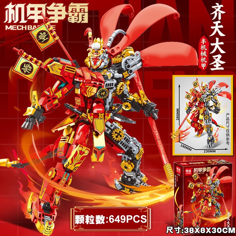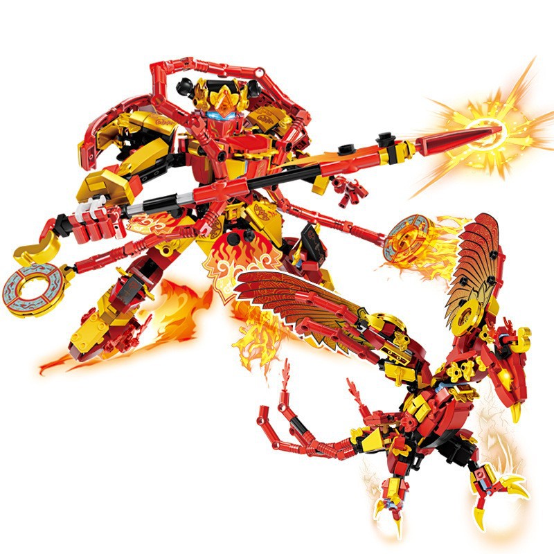 레고 조립 된 건물 블록 국가 스타일 메카 우콩 변형 드래곤 어린이 장난감 큰 색상 상자 바디 선물 제공