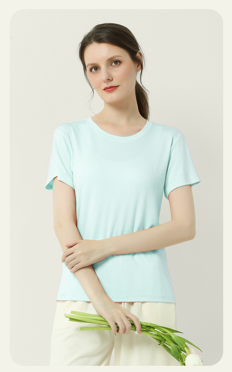 새로운 60 양면 모달 봄과 여름 여성의 둥근 목 단색 밑바닥 짧은 소매 티셔츠 재고 빠른 머리 외출스토어 가기