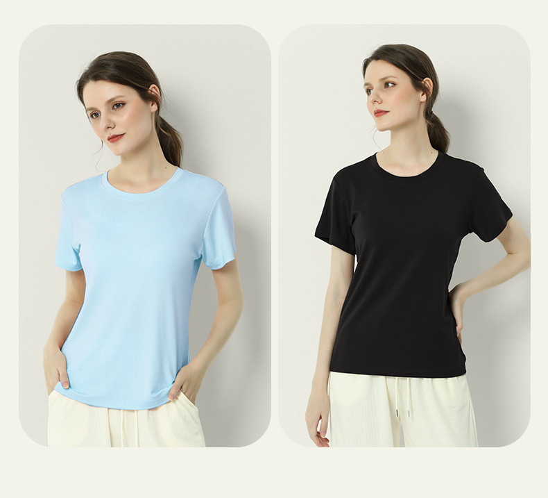 새로운 60 양면 모달 봄과 여름 여성의 둥근 목 단색 밑바닥 짧은 소매 티셔츠 재고 빠른 머리 외출