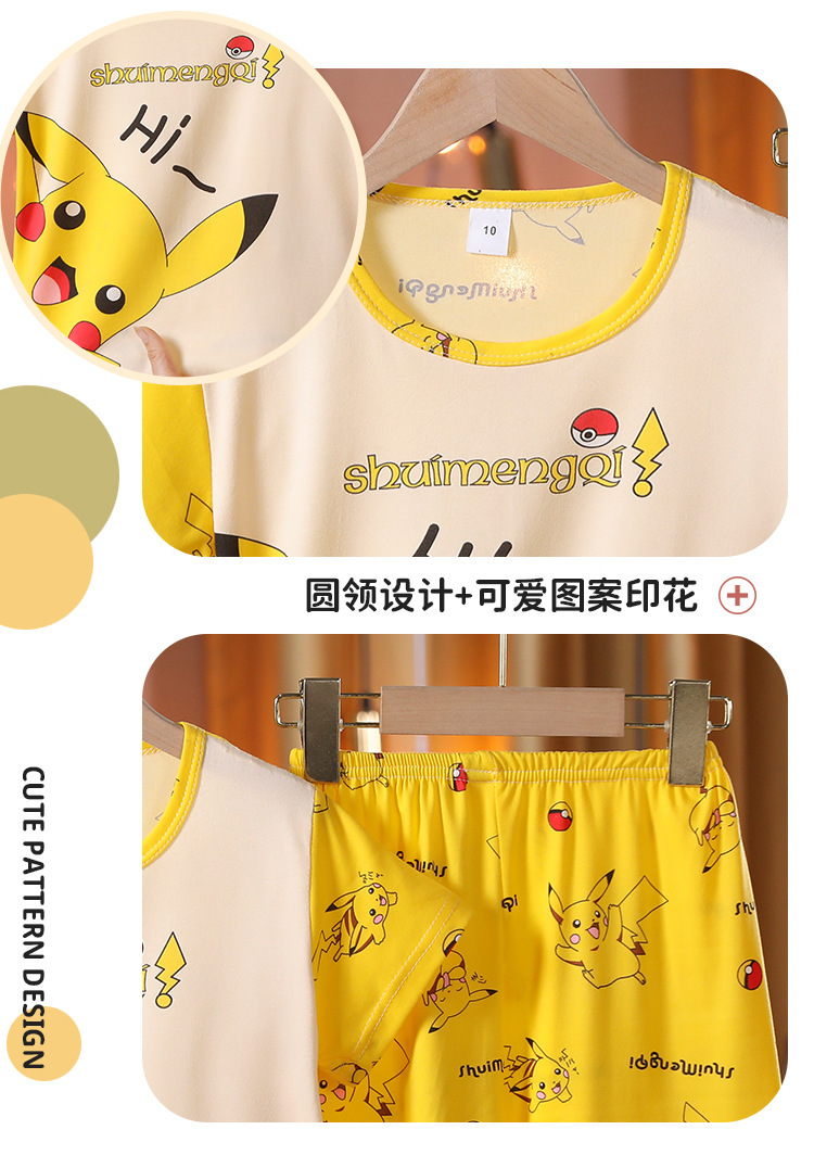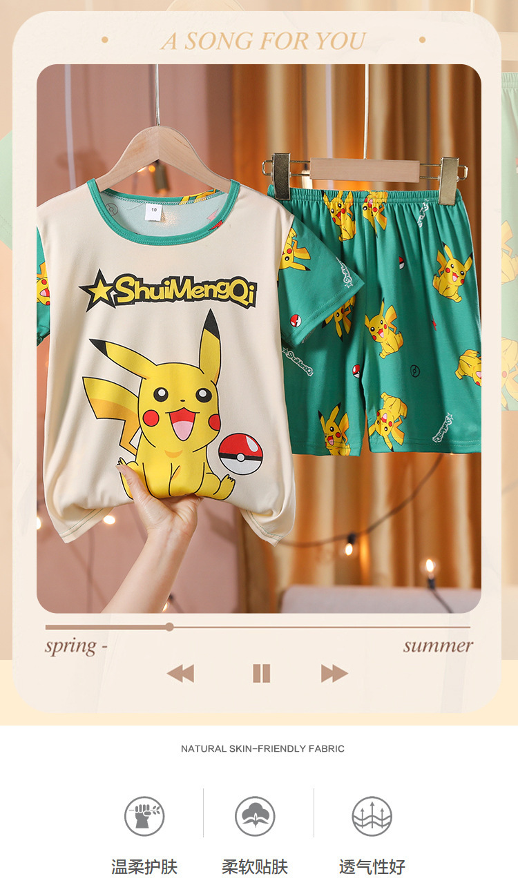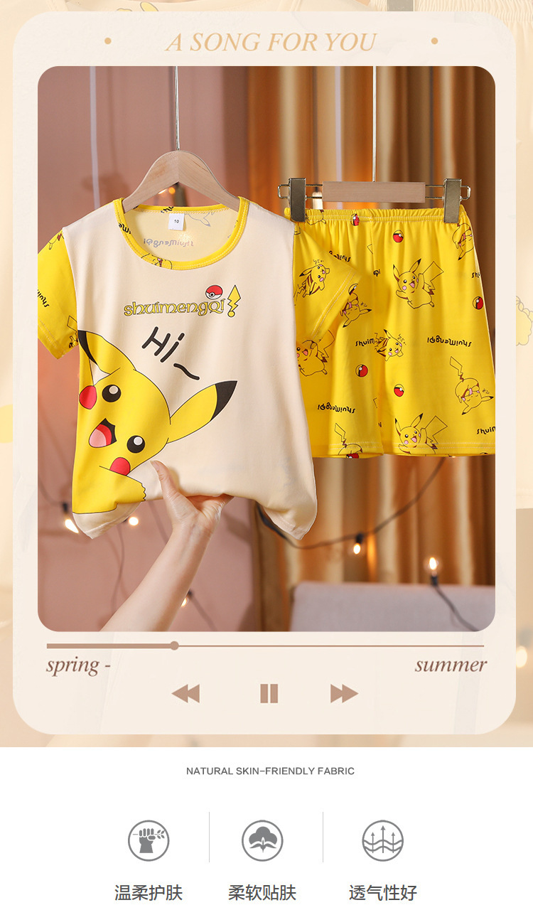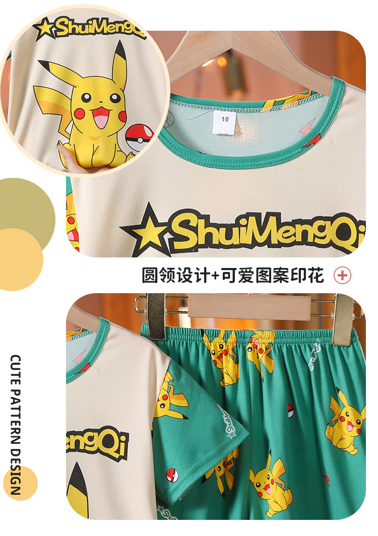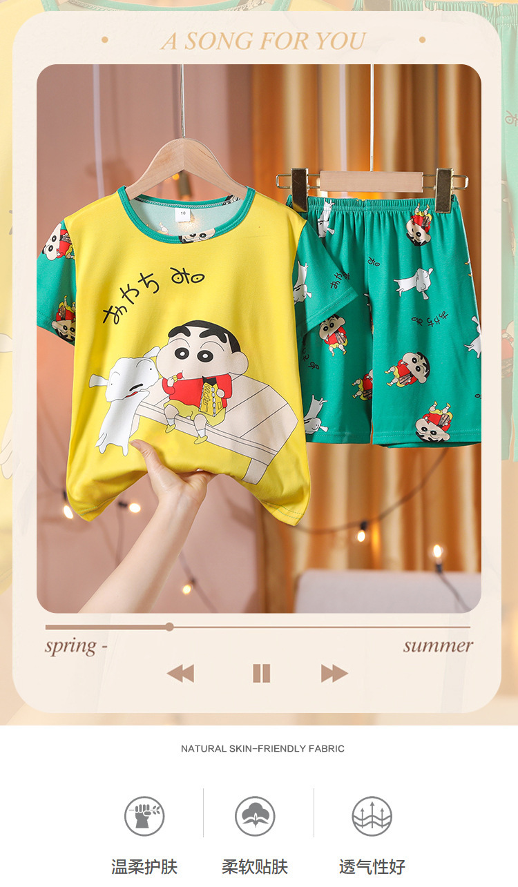 어린이 잠옷 반팔 소년 소녀 중 큰 어린이 얇은 여름 만화 아기 소년 학생 홈웨어 세트