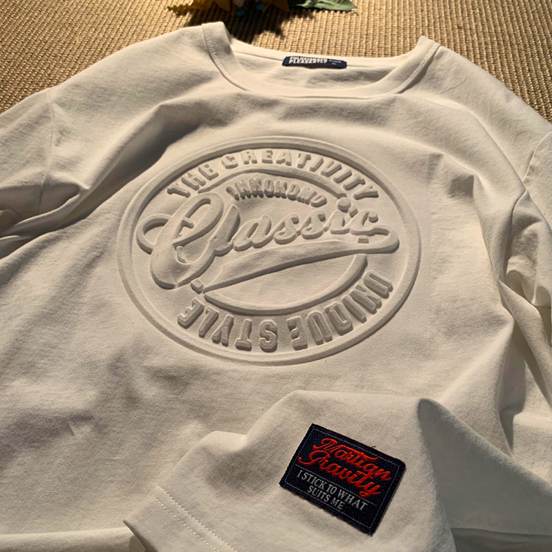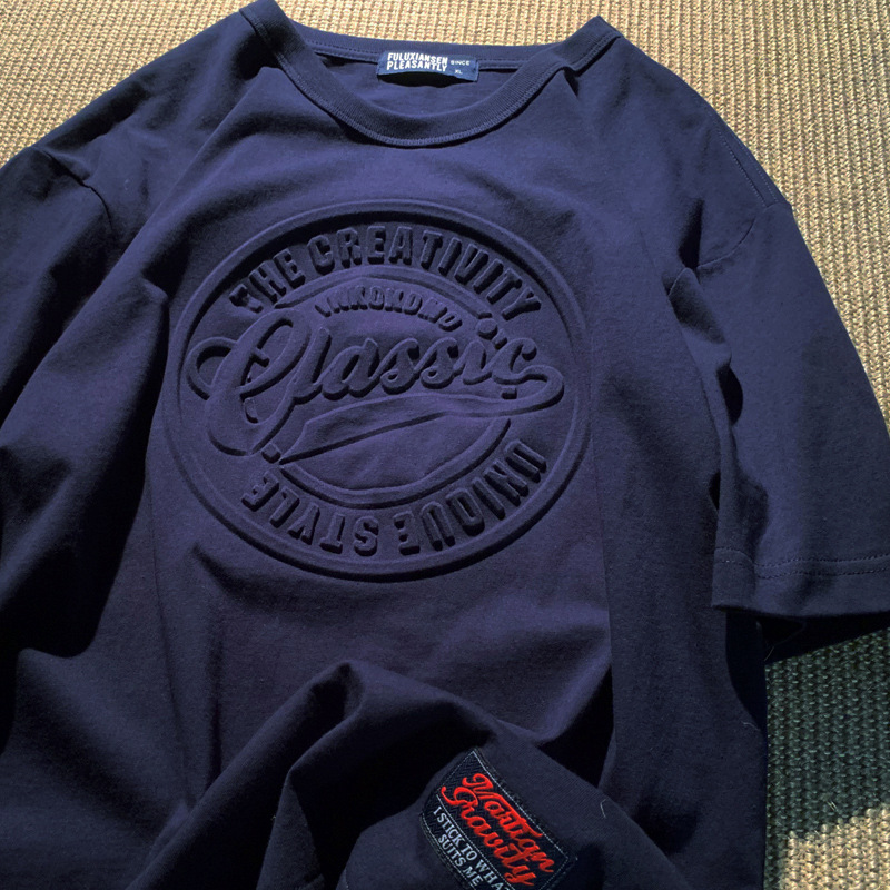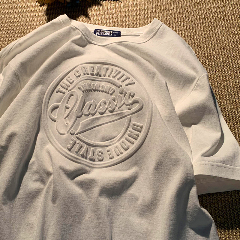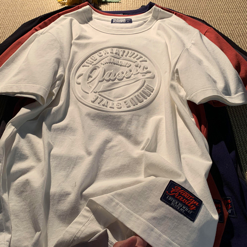 범프 스테레오 반팔 라운드 넥 티셔츠 남성용 아메리칸 스타일 재개 오버 사이즈 새로운 3D 인쇄 스테레오 알파벳 티셔츠스토어 가기