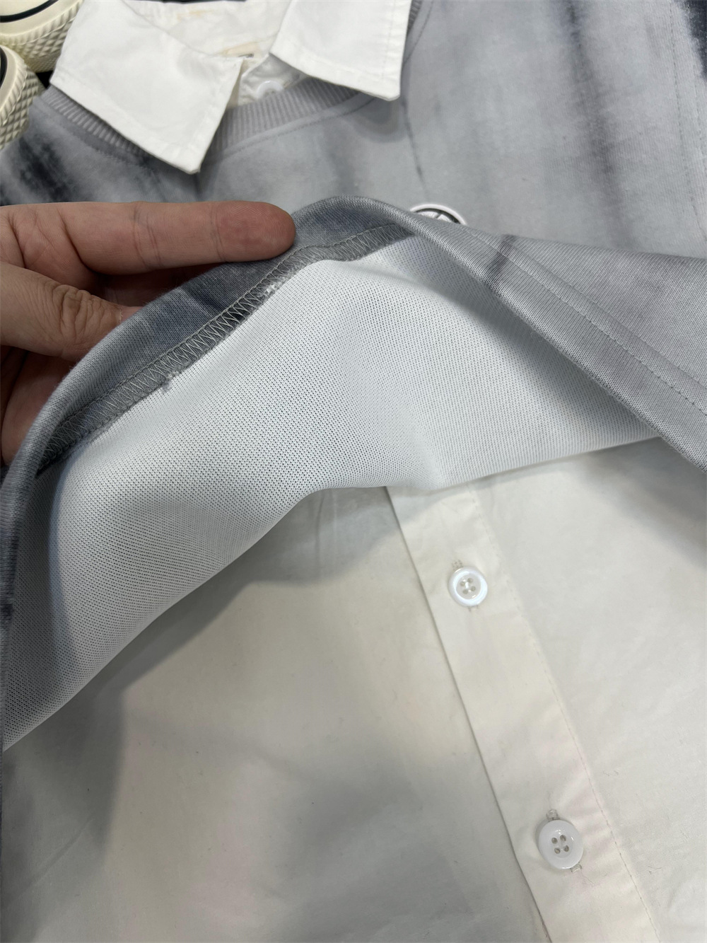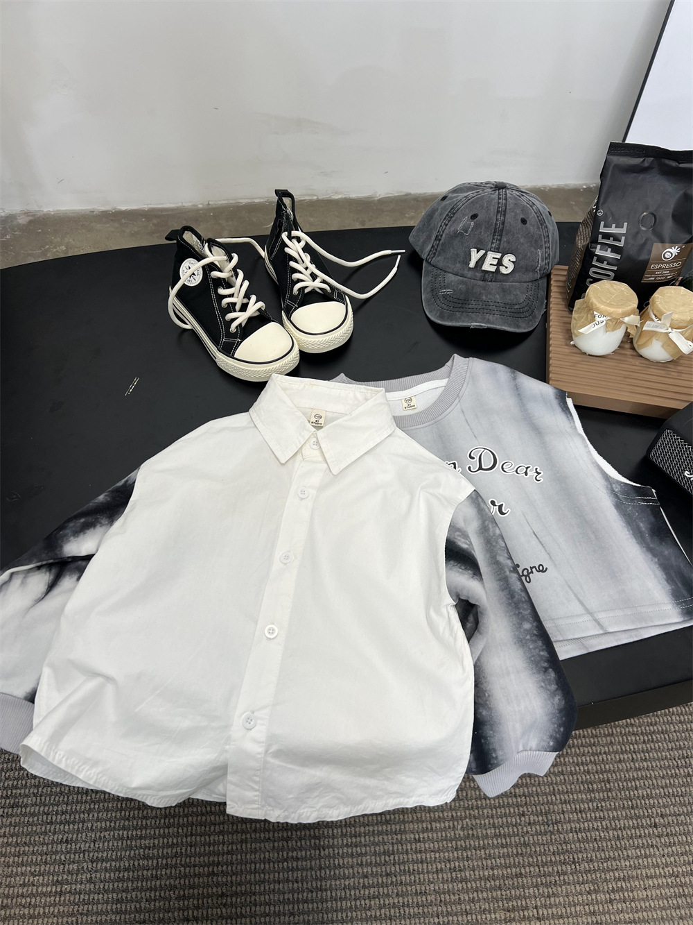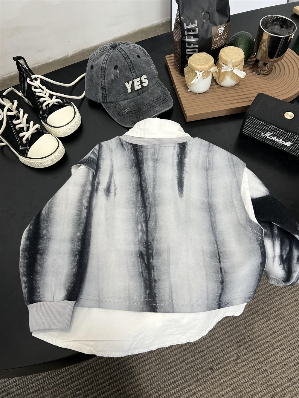 2024 봄 어린이 넥타이 염색 셔츠 스웨터 진짜 투피스 소년의 트렌디 한 멋진 잉크 인쇄 및 염색 셔츠 스티칭 세트