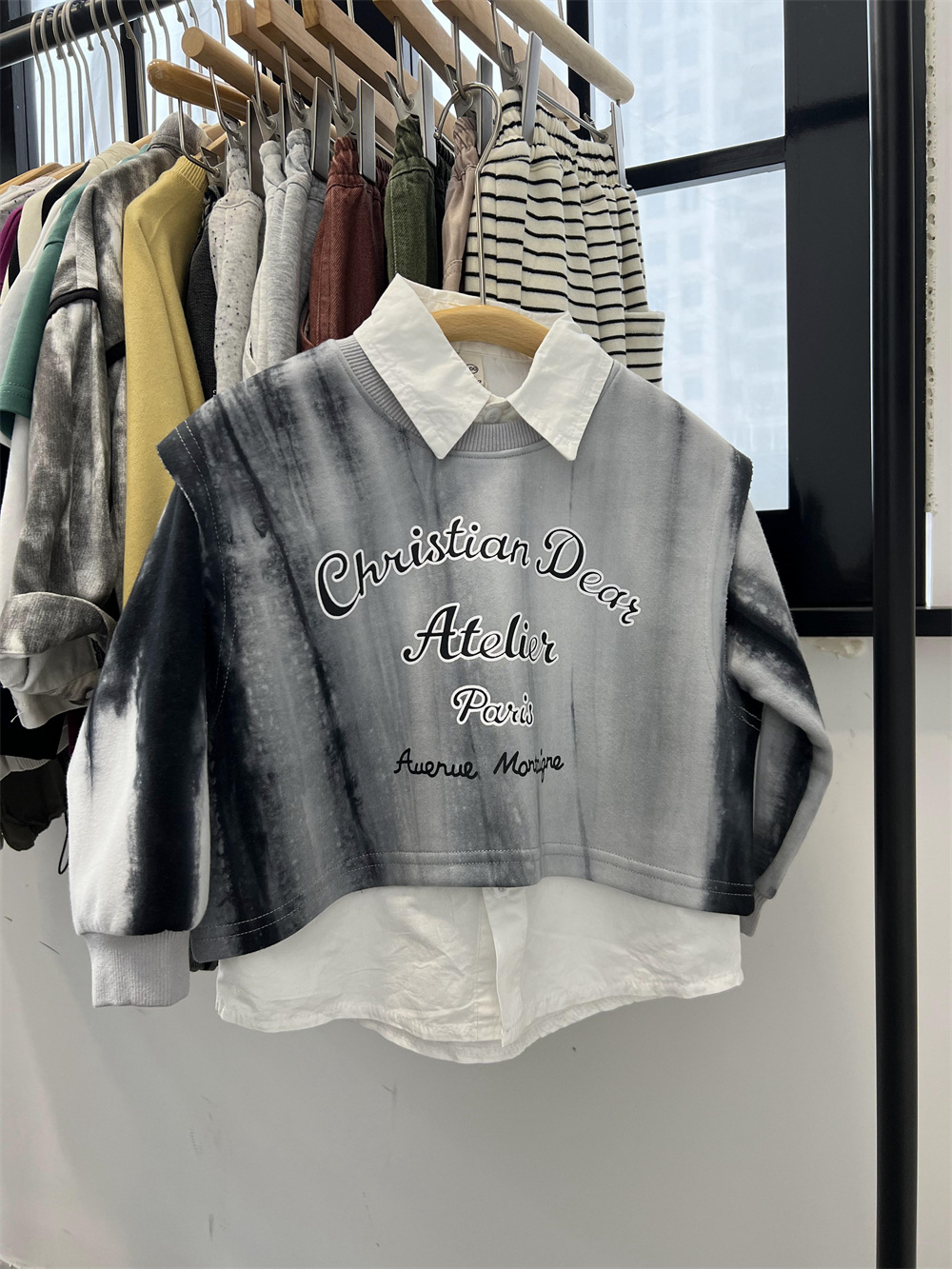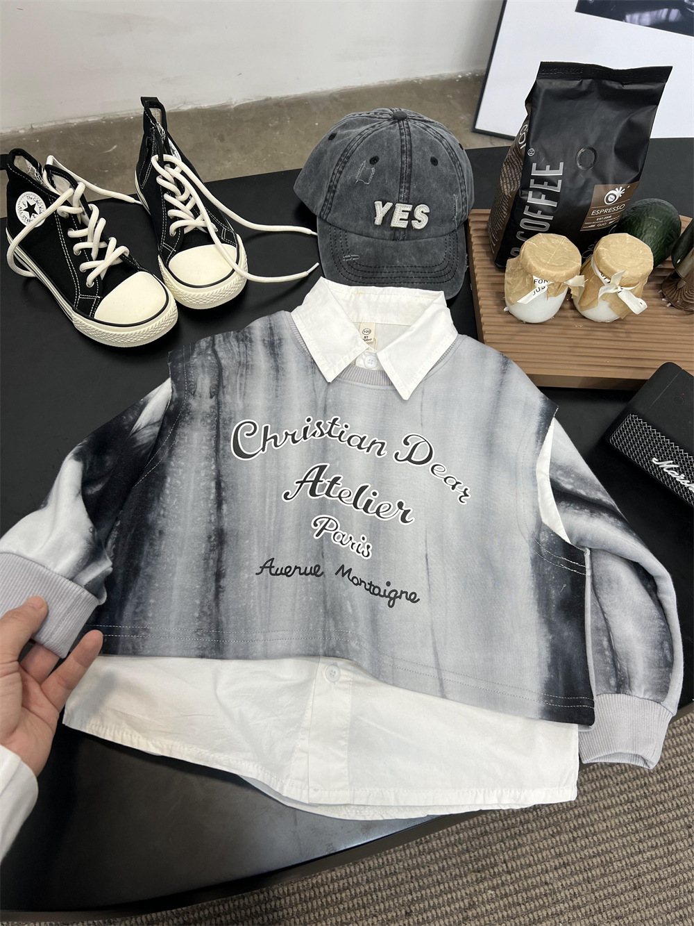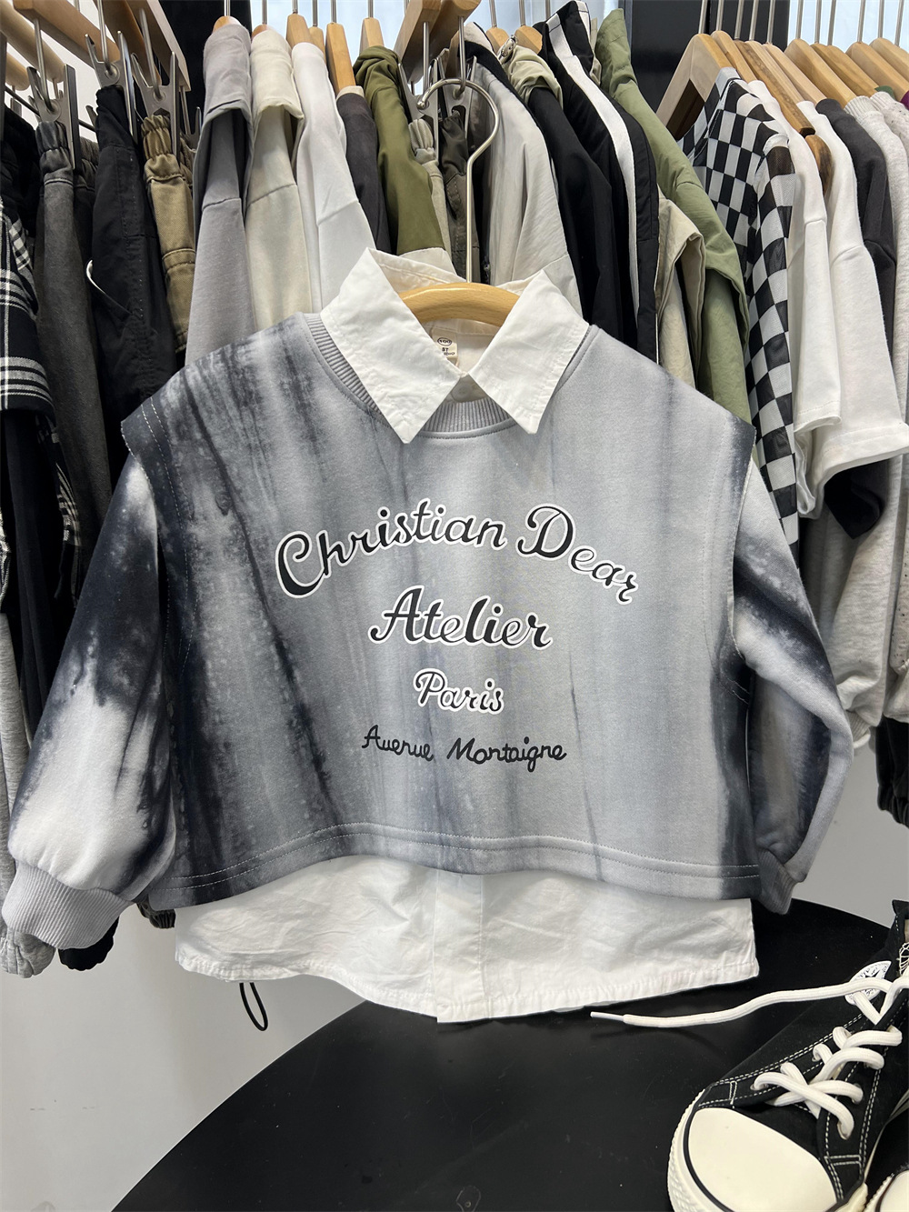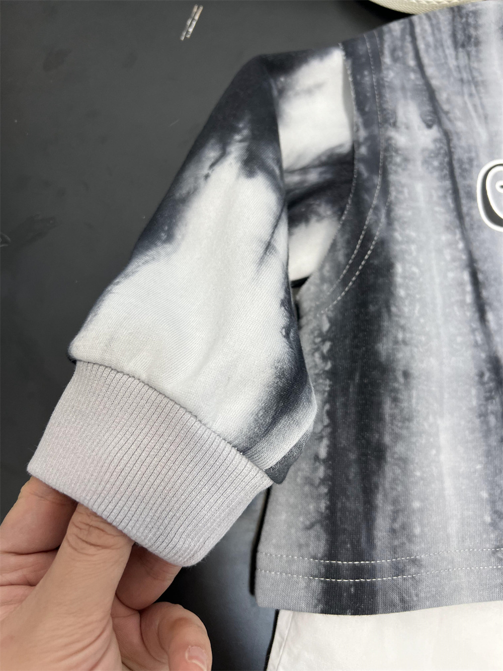 2024 봄 어린이 넥타이 염색 셔츠 스웨터 진짜 투피스 소년의 트렌디 한 멋진 잉크 인쇄 및 염색 셔츠 스티칭 세트스토어 가기