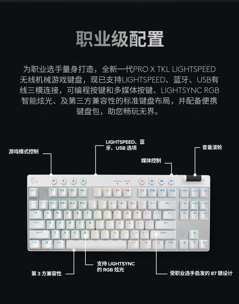 Logitech G PRO X TKLLIGHTSPEED 게임 키보드 3 모드 연결 RGB 조명 효과 전자 스포츠 먹는 치킨