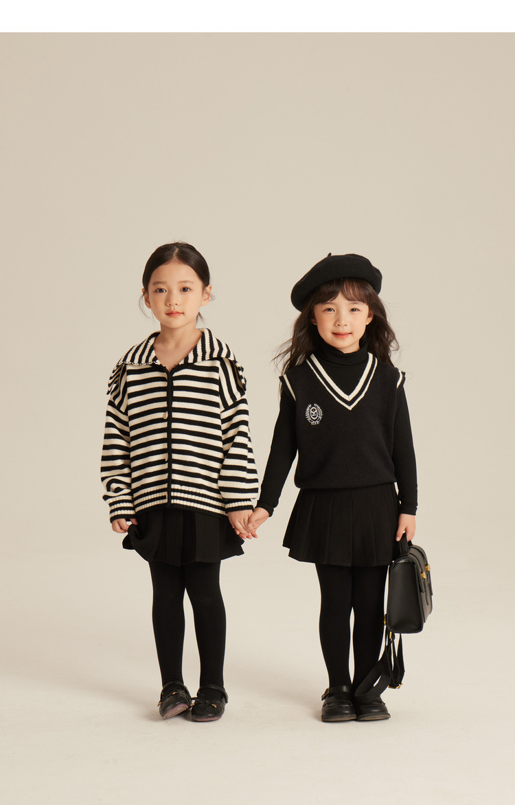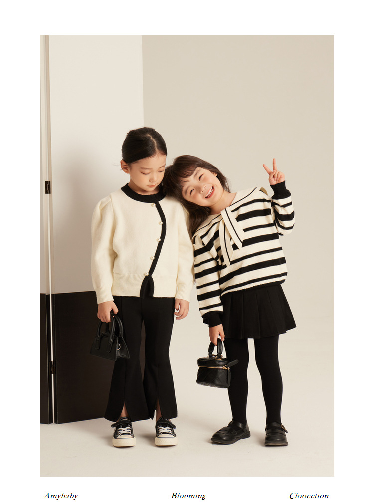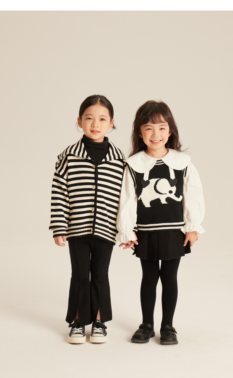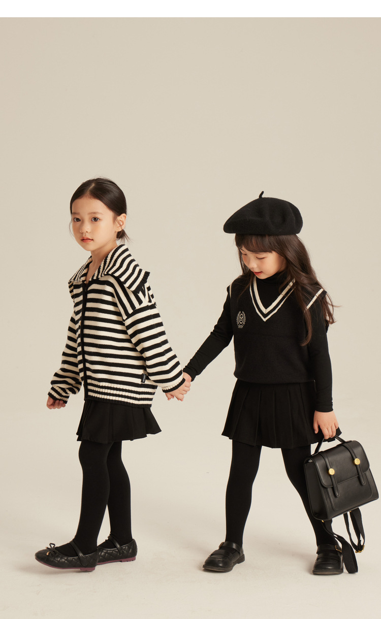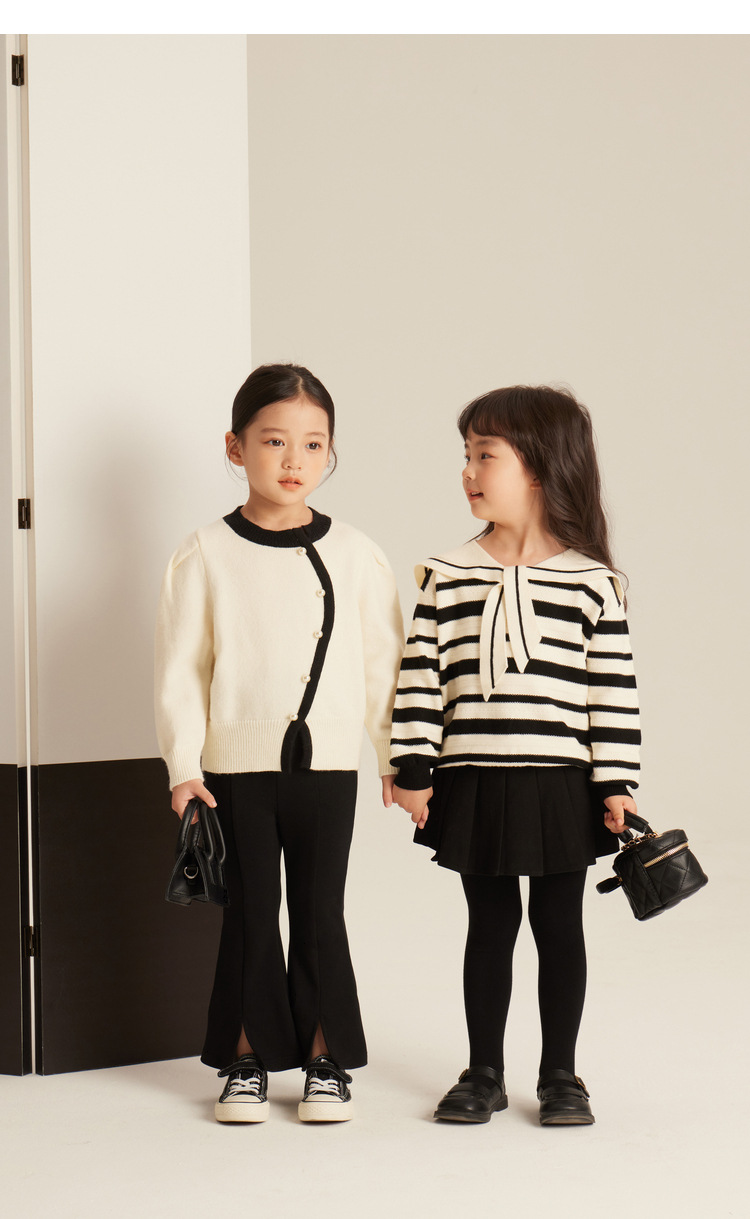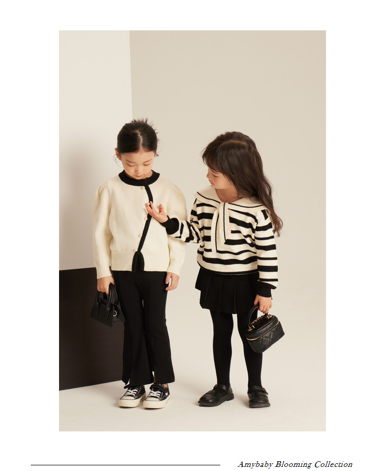 Amybaby 여아복 세트 2024년 봄 가을 신상 어린이 흑백 대비 색상 시리즈 니트 봄 신상스토어 가기