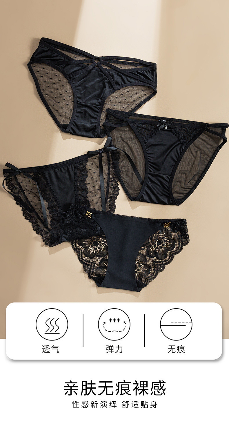 섹시한 레이스 속옷 여성의 반투명 메쉬 국경 유럽과 미국 스타일의 원활한 낮은 허리 검은 순수한 욕망 브리핑