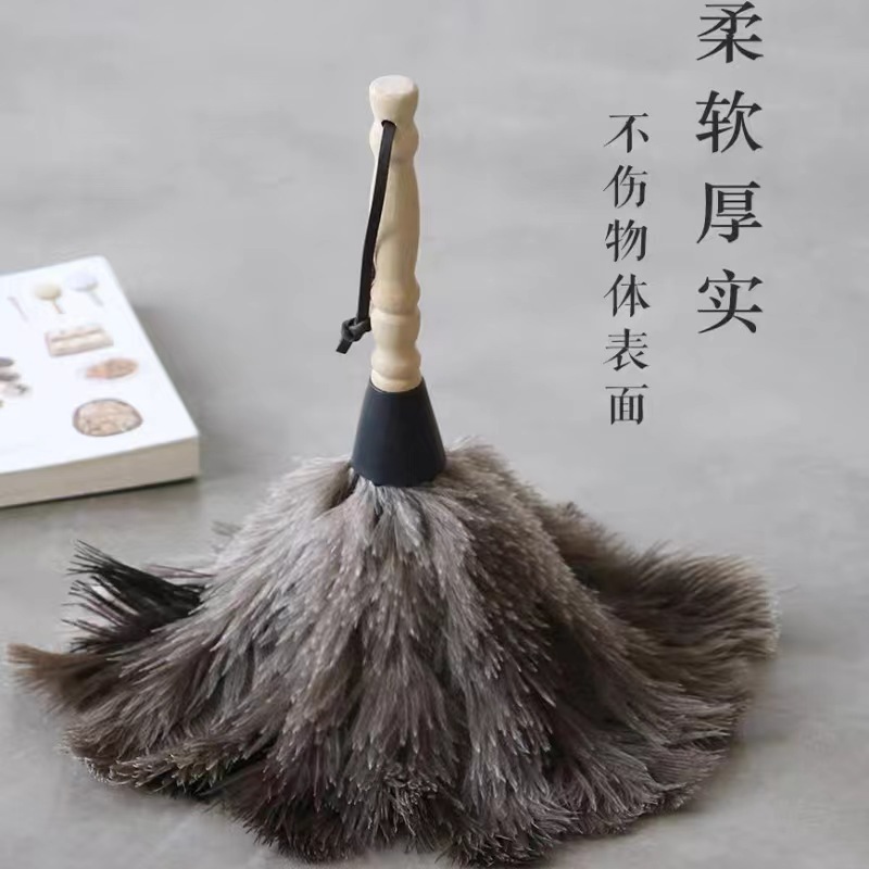 • 호두나무 손잡이 낙타털 먼지떨이, 전체 길이 60cm