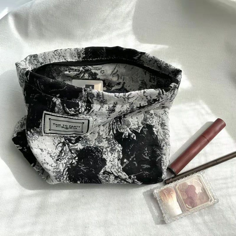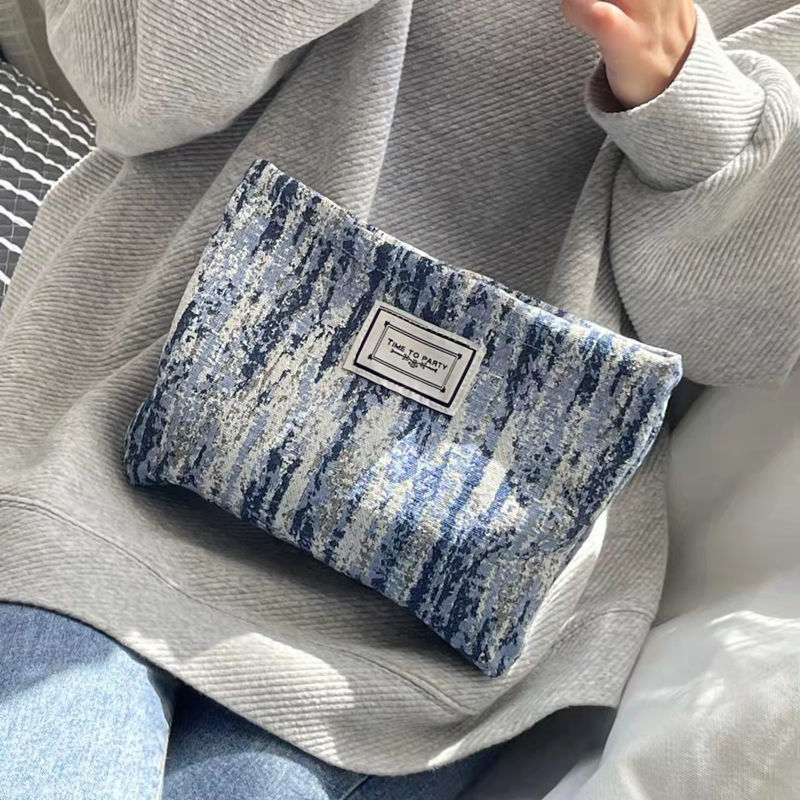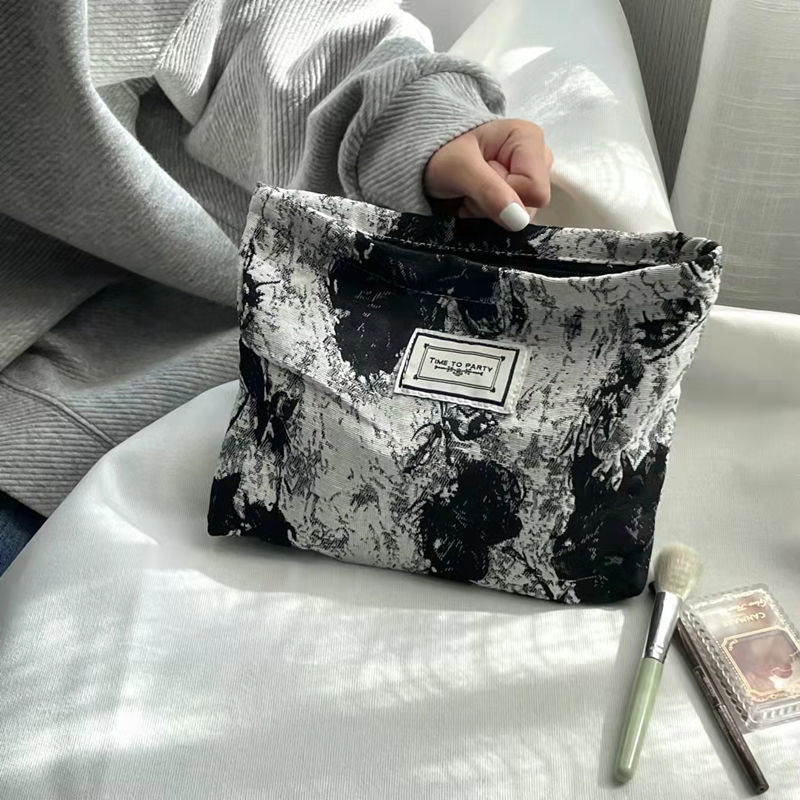 새로운 프랑스 자카드 화장품 가방 올 매치 스킨 케어 보관 가방 간단한 높은 모습의 여성 변경 휴대 전화 클러치