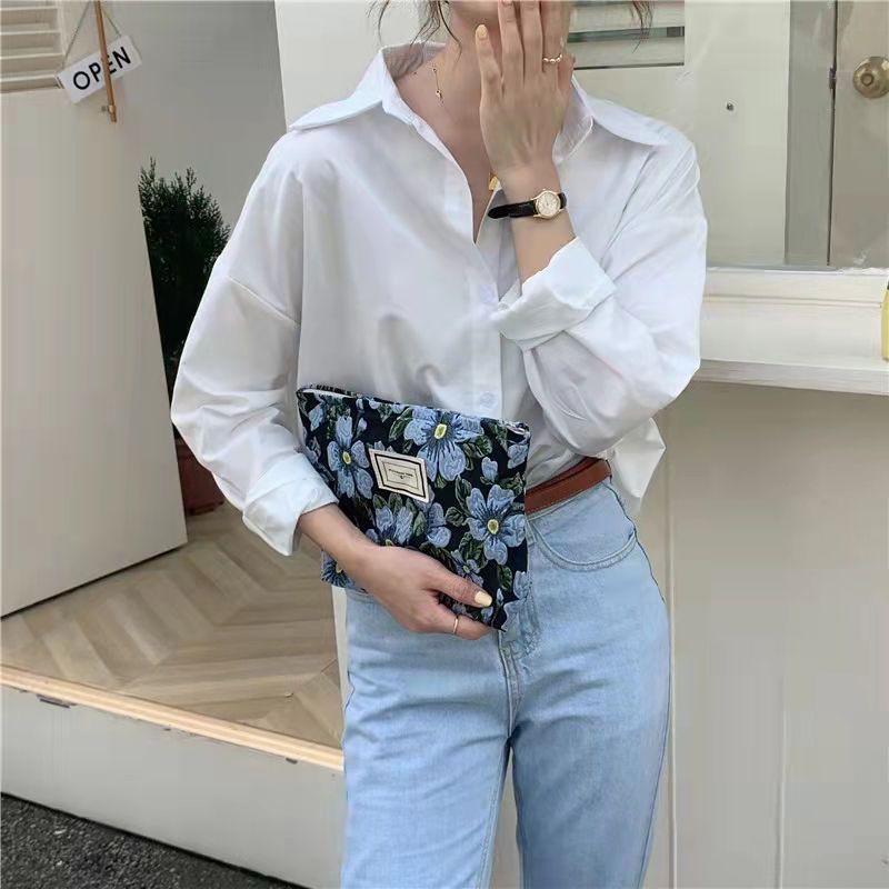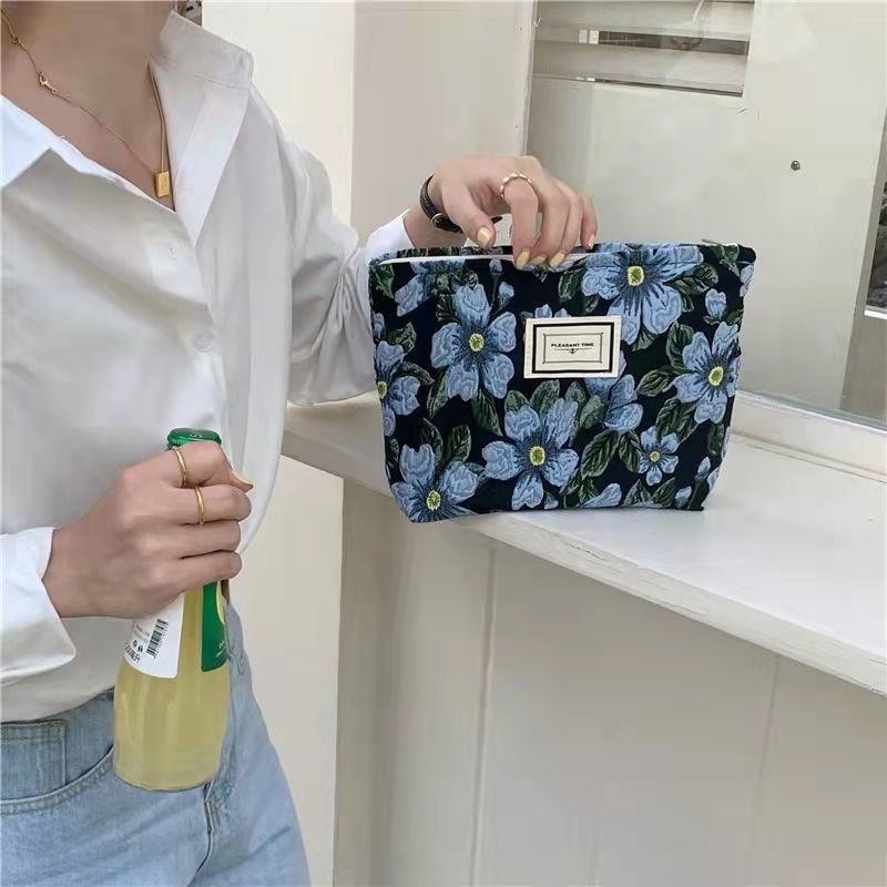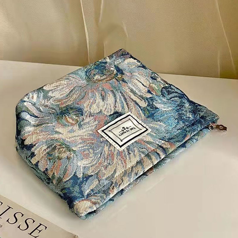 • 모네 블루 큰 꽃 화장품 가방 유화