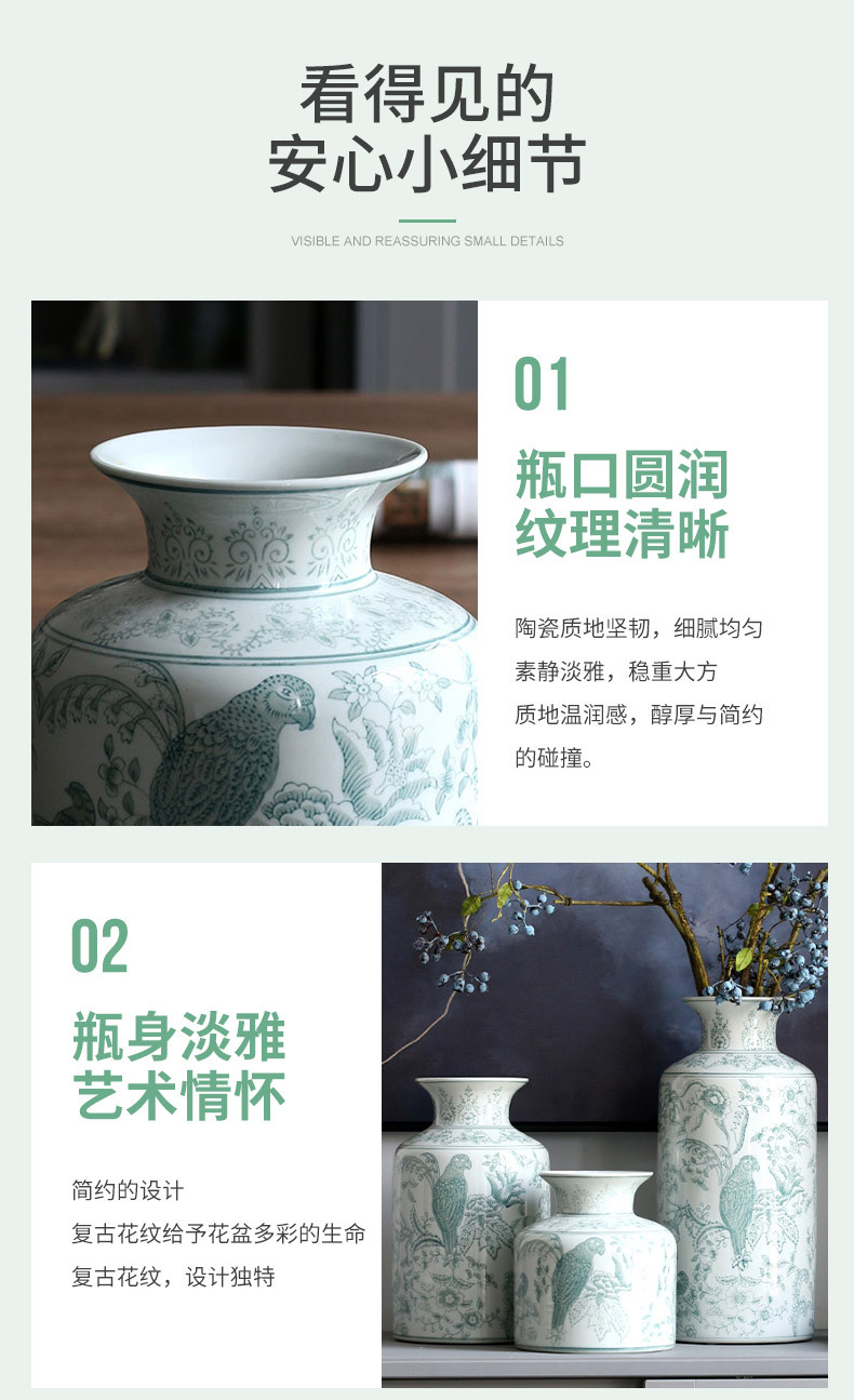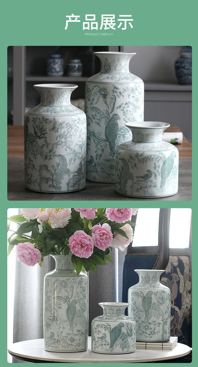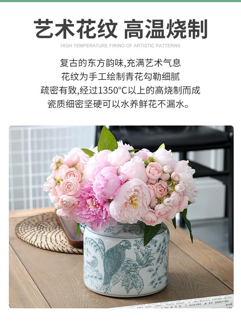 새로운 중국 스타일 파란색과 흰색 도자기 꽃병, 고급 앵무새 꽃 패턴 중국 스타일 Jingdezhen 세라믹 거실 꽃꽂이 꽃병스토어 가기