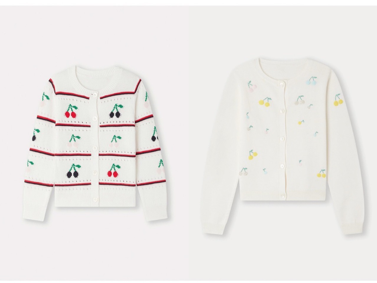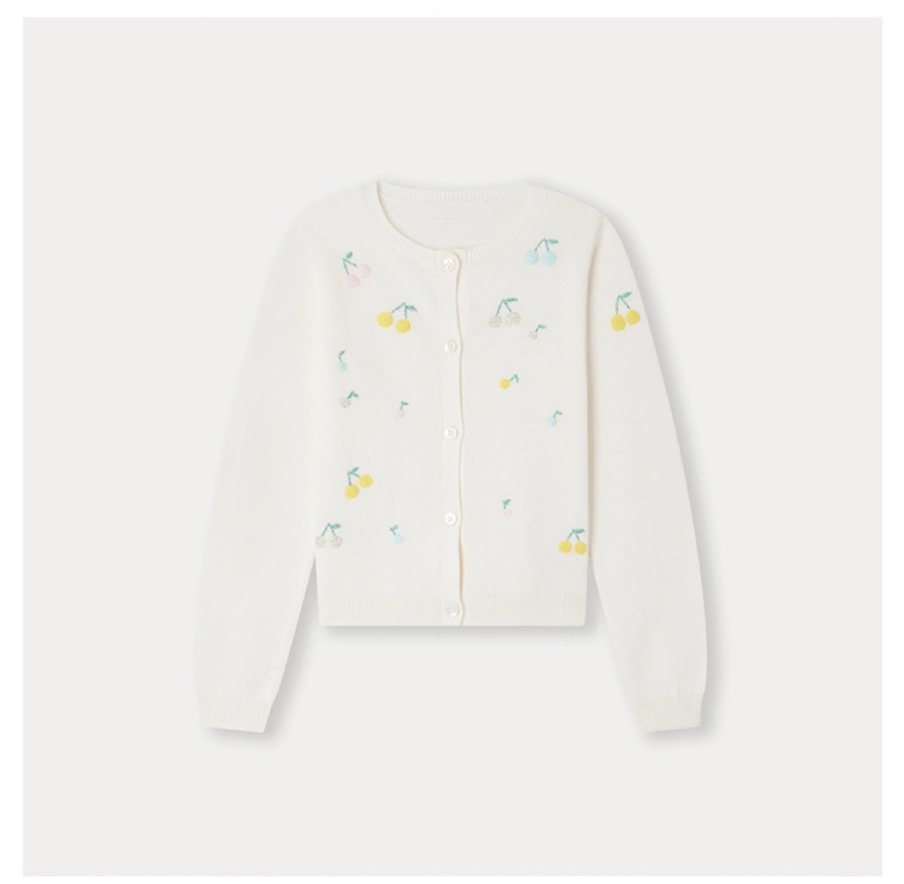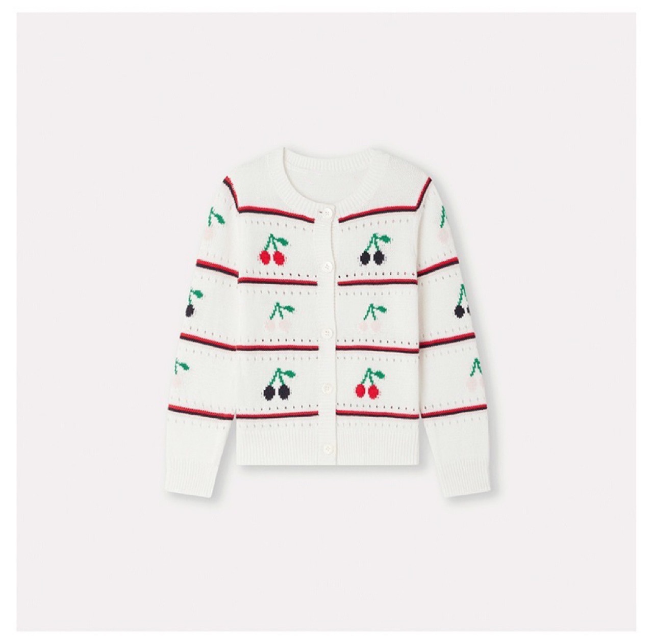 Spot Little Cherry 아동복 24 봄 여름 새 여자 긴팔 니트 자카드 코튼 카디건 대학 스타일 스웨터 재킷스토어 가기