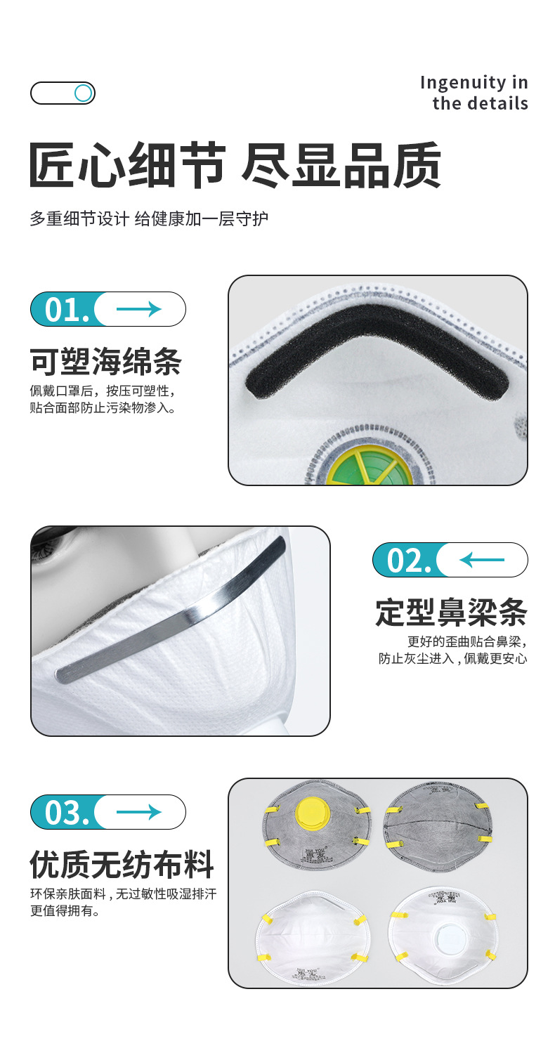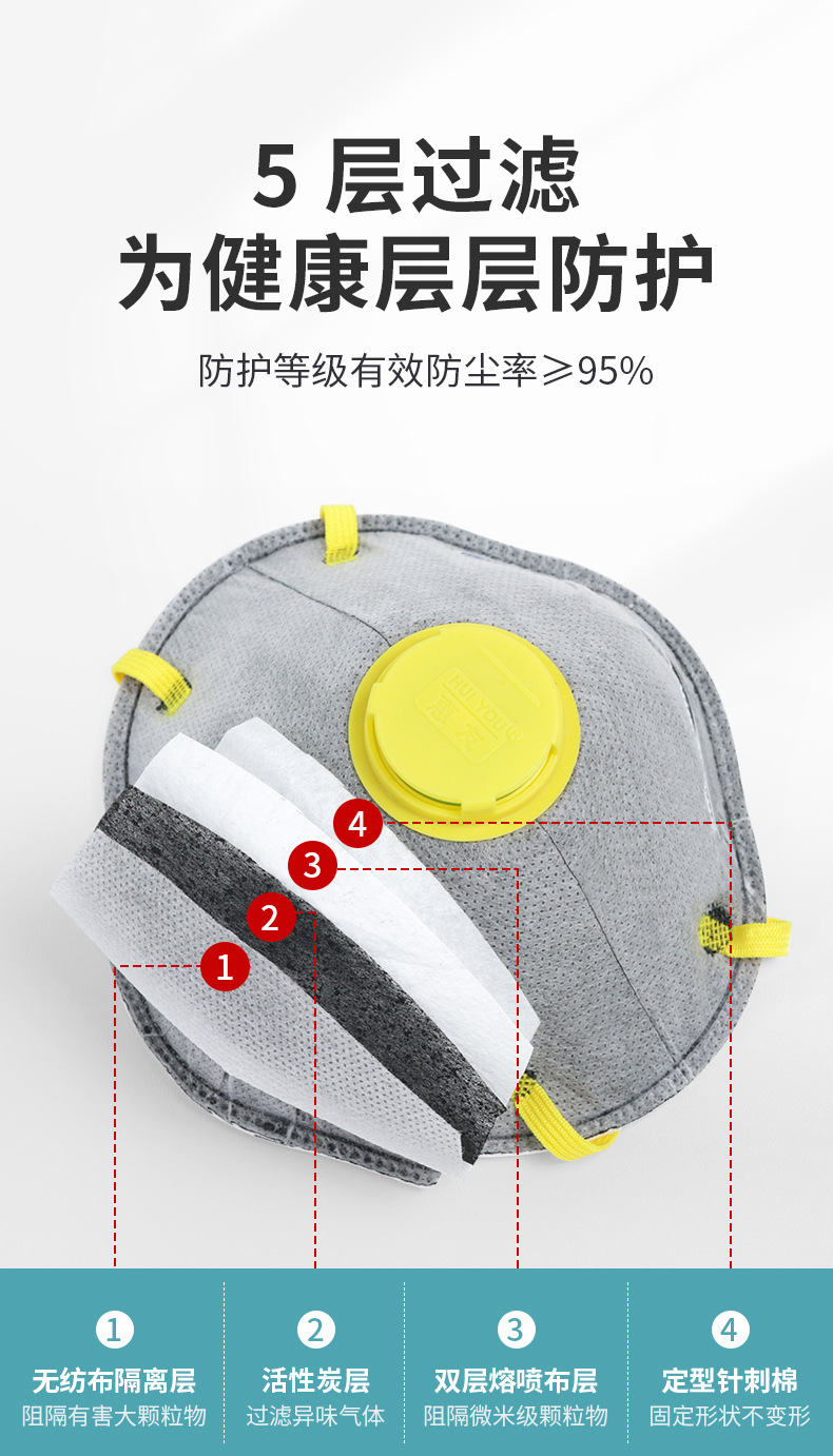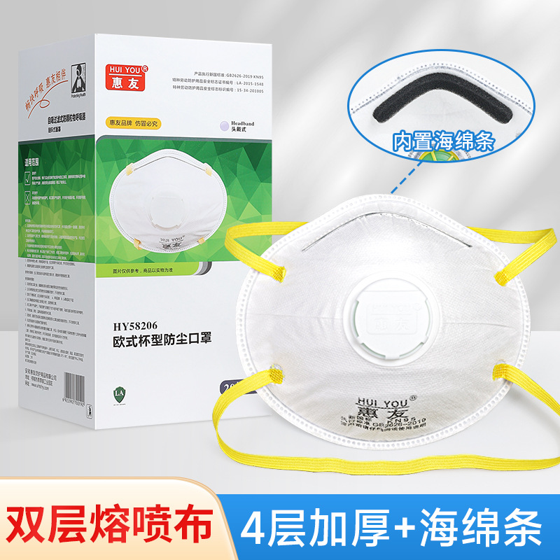 Huiyou 58202 방진 마스크 컵형 산업용 먼지 방지 통기성 장식 연삭 마스크 호흡 밸브 마스크스토어 가기