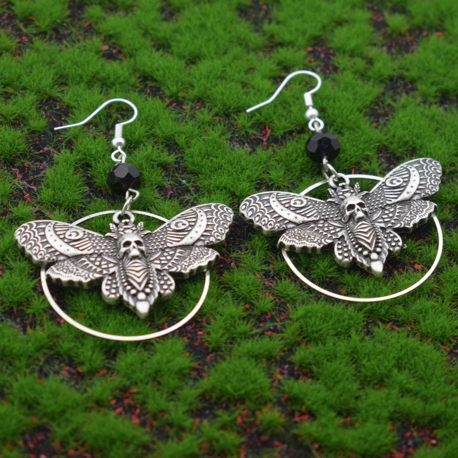 빈티지 고딕 고딕 죽음의 두개골 나방 체인 귀걸이 남자 여자 펜던트 목걸이 귀걸이 빈티지 펑크스토어 가기