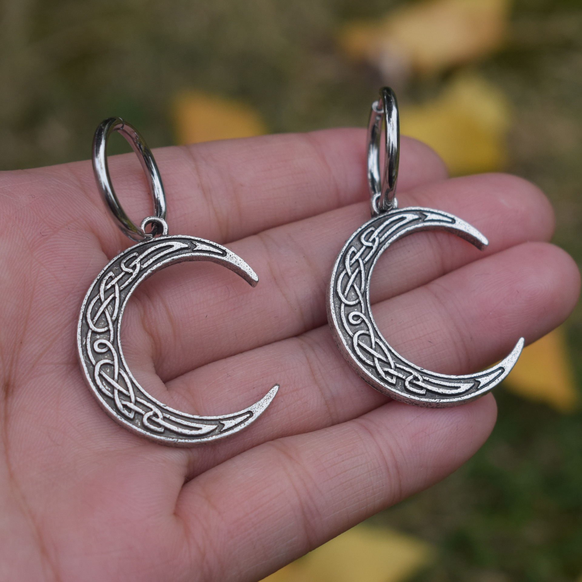 1 북유럽 바이킹 셀틱 매듭 까마귀 달 까마귀 여자 귀걸이 신선하고 달콤한 만화 모조 진주 없음