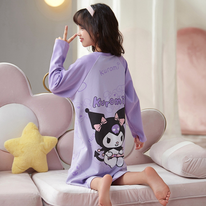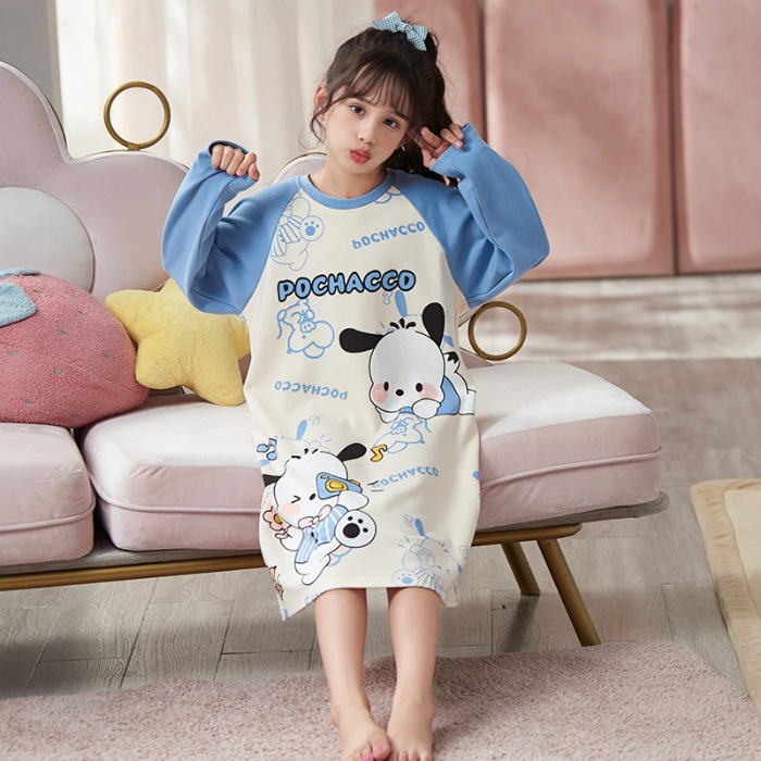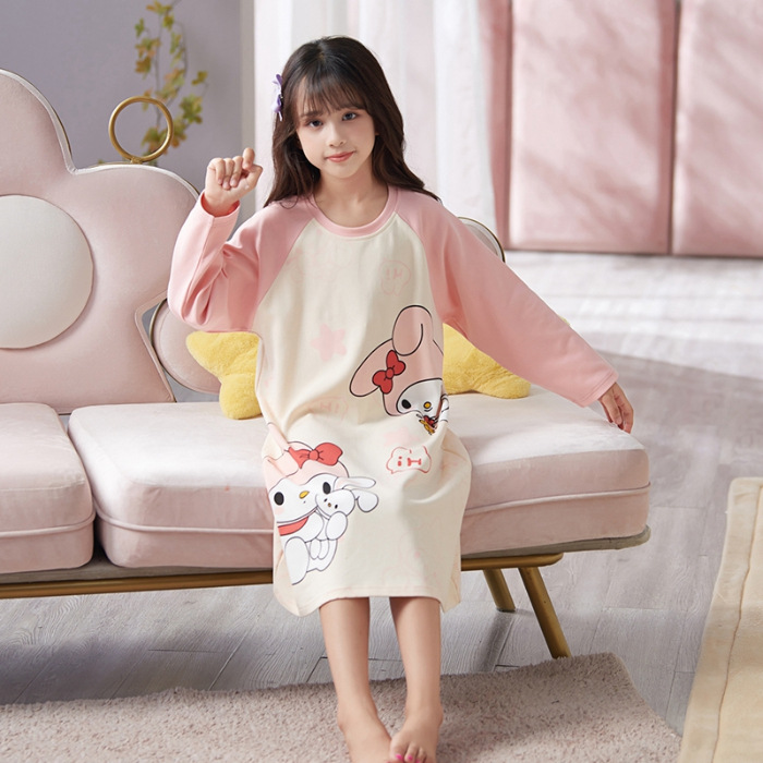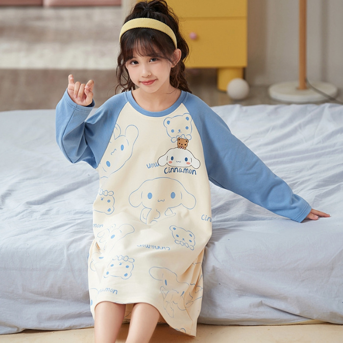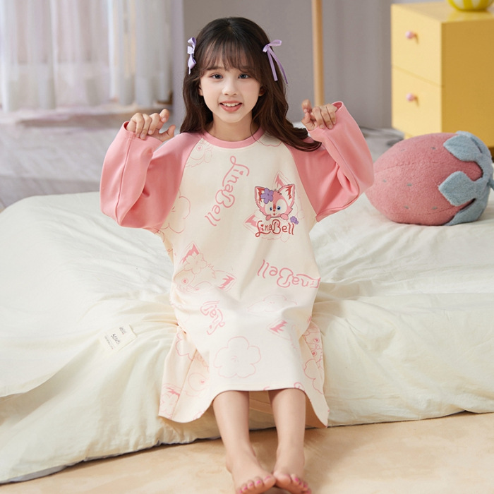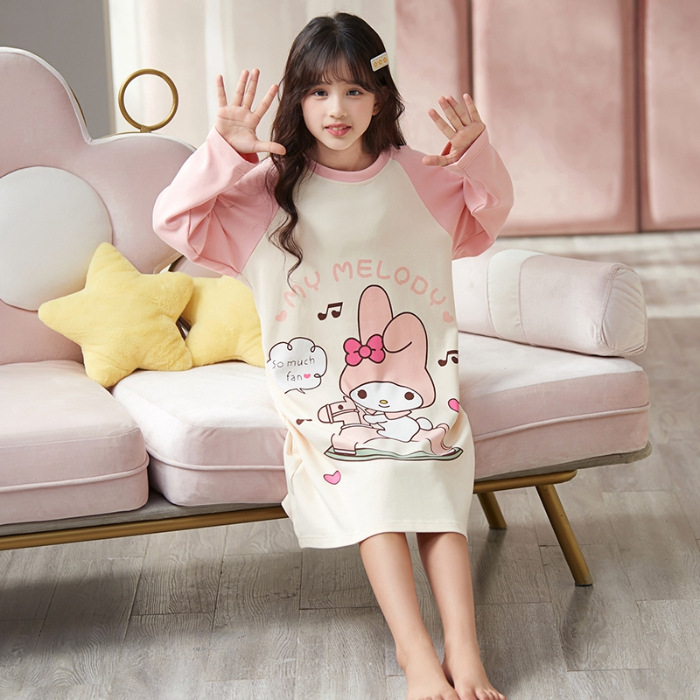 소녀 나이트 드레스 가을면 긴팔 스커트 어린이 잠옷 2024 새 겨울 어린 소녀 나이 많은 어린이 홈 웨어