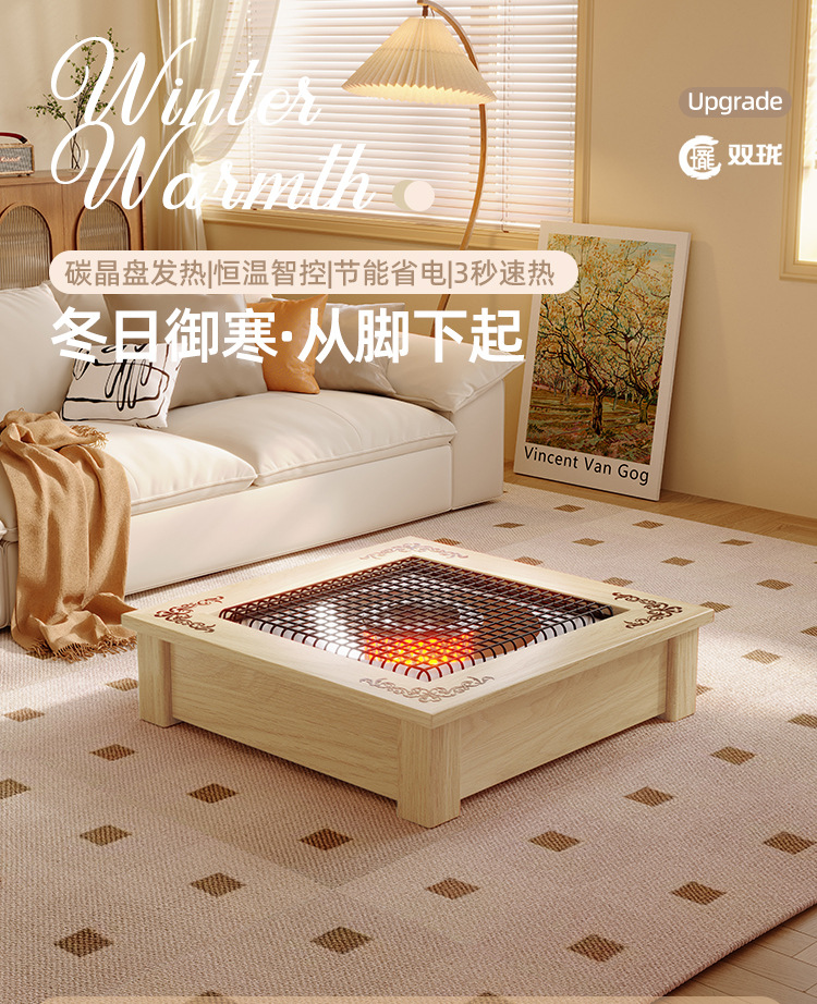 • 통나무 색상 60X60cm [업그레이드된 탄소 결정 디스크 가열/환경 보호 및 내구성]
