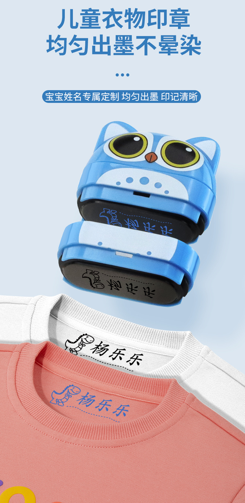 다기능 어린이 이름 인감 커버 의류 유치원 아기 입구를 필수 만드는 2 색 이름 씰스토어 가기