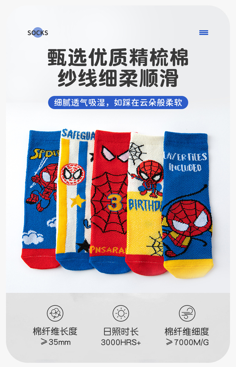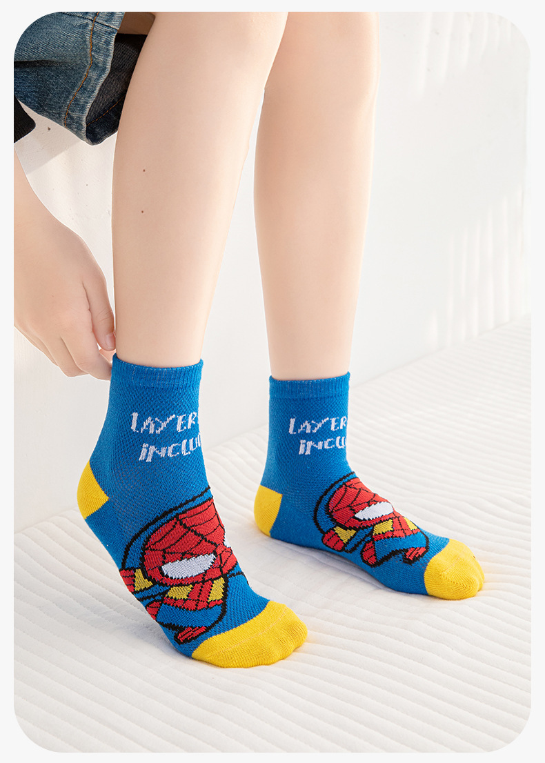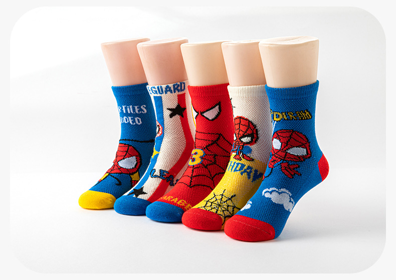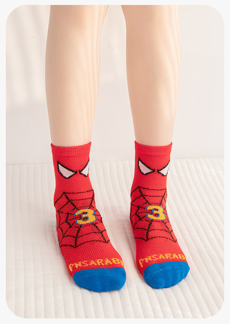 어린이 양말 여름 얇은 순수한면 메쉬 양말 만화 배치 머리 보물 학생 소년 양말 봄과 여름 중반 종아리 길이 양말
