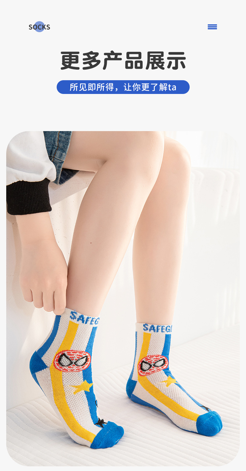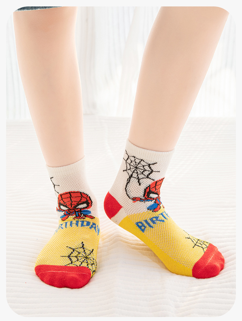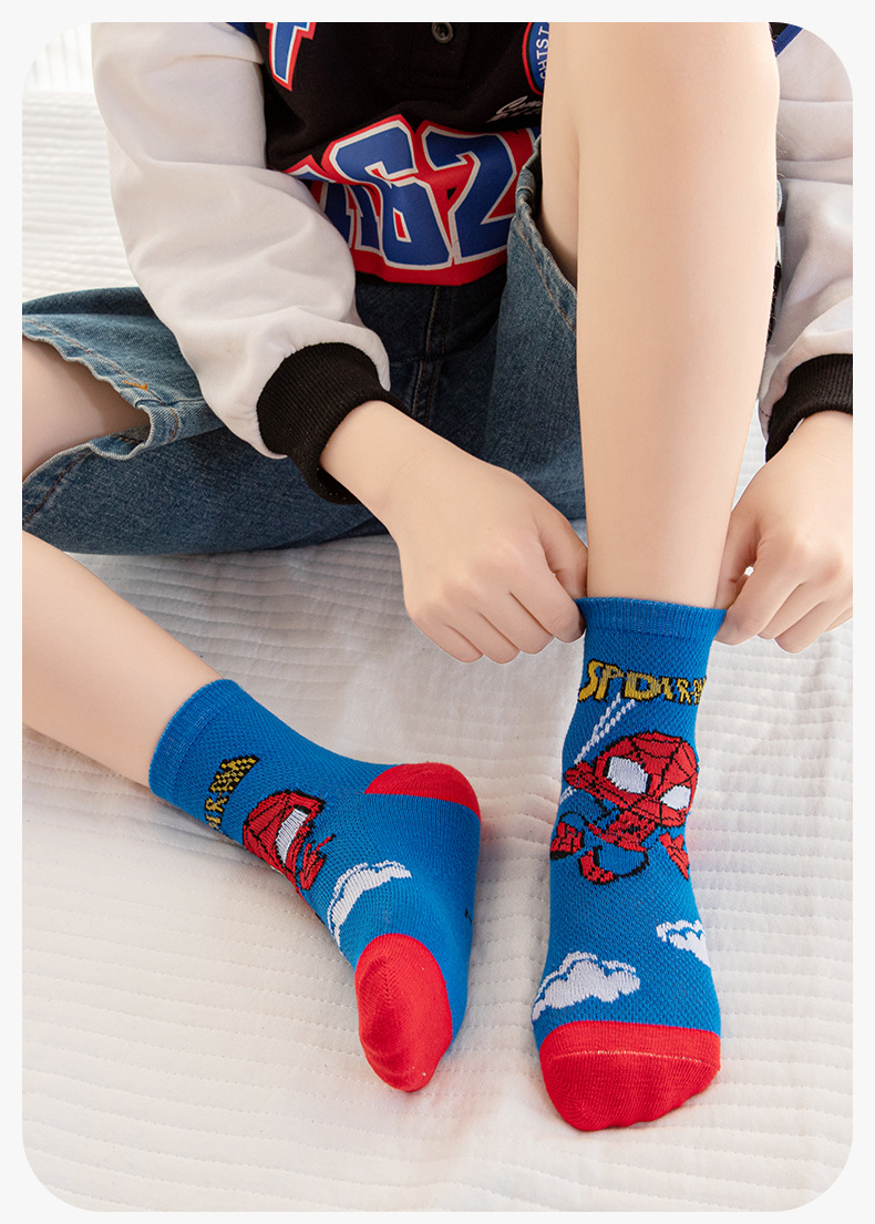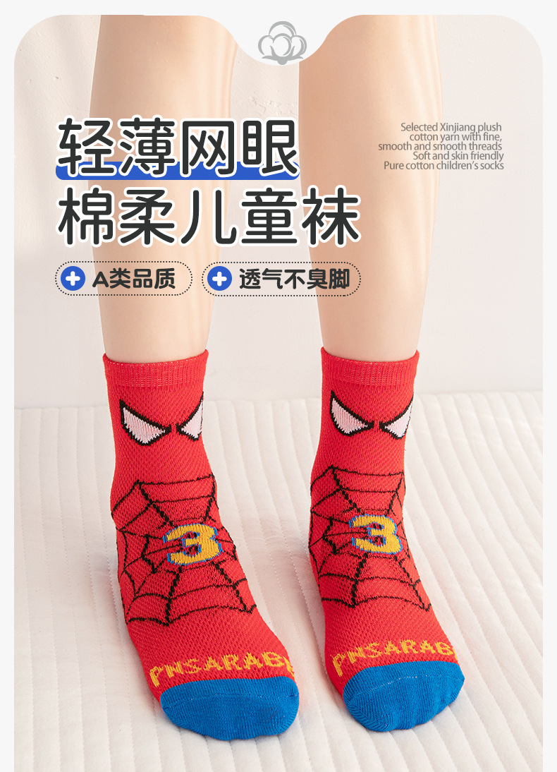 어린이 양말 여름 얇은 순수한면 메쉬 양말 만화 배치 머리 보물 학생 소년 양말 봄과 여름 중반 종아리 길이 양말스토어 가기
