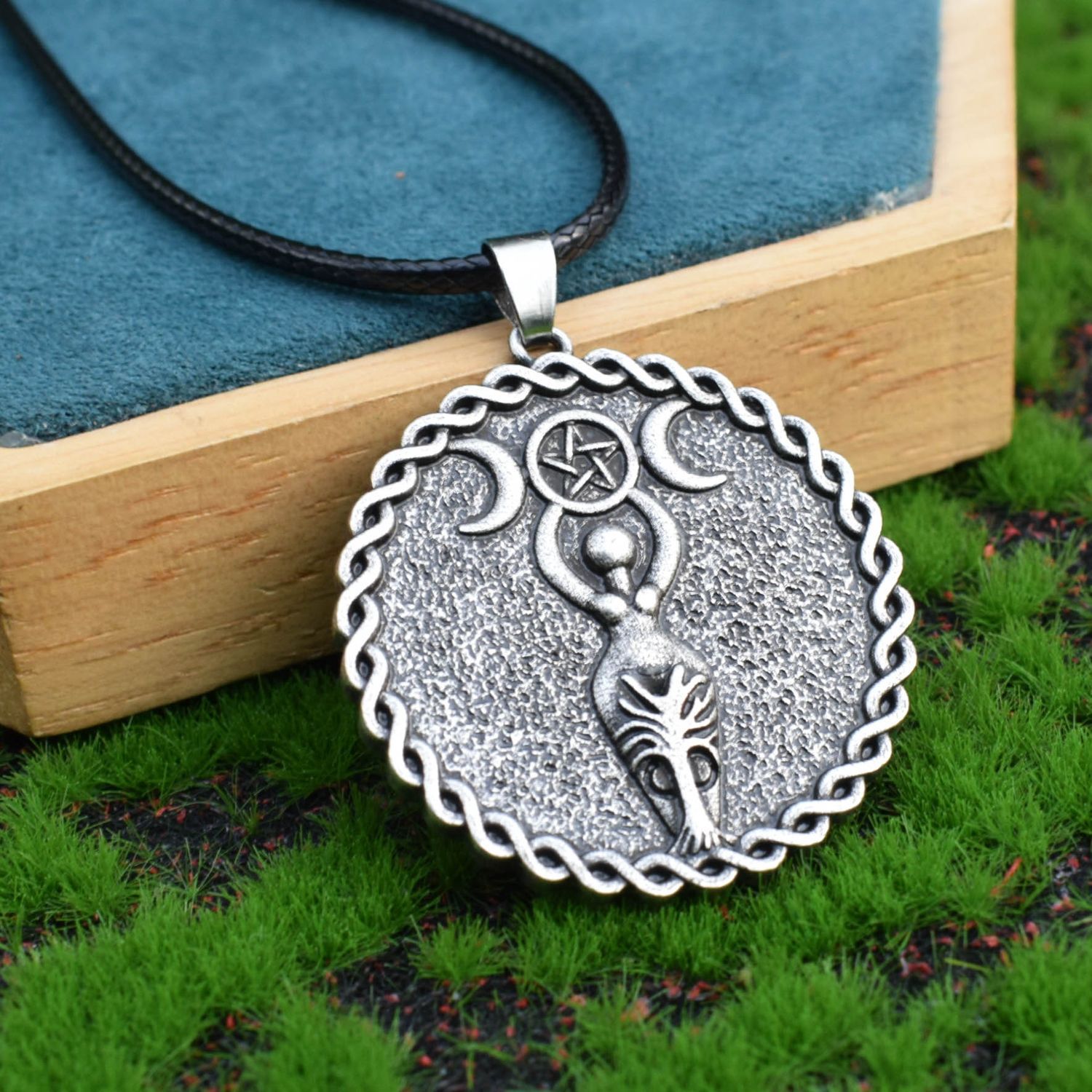 Wiccan 나선형 Wiccan 여성 여신과 달 단계 목걸이 귀걸이 액세서리 Bodhi Jinhua