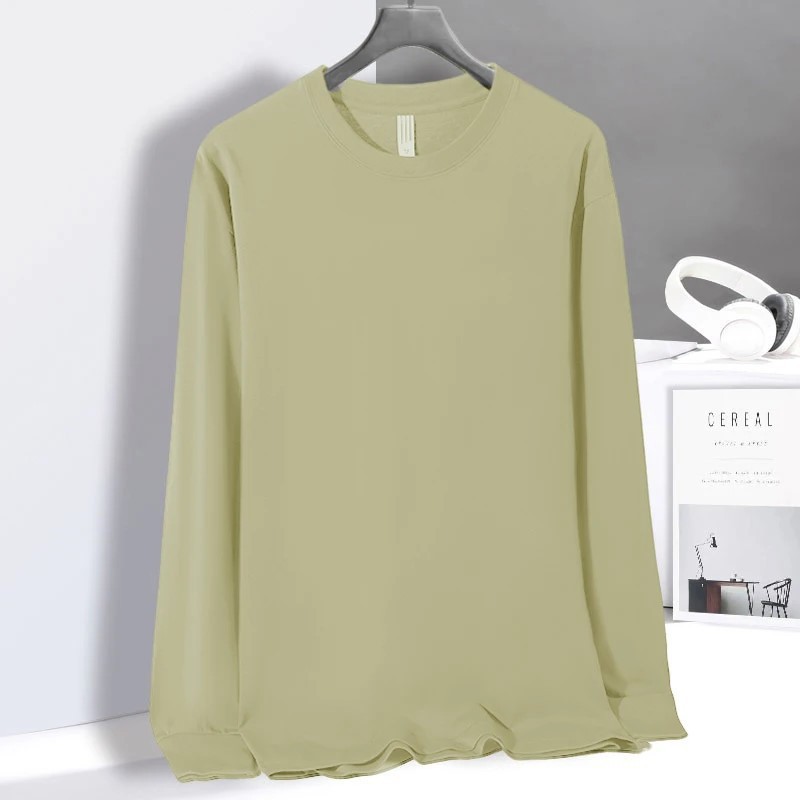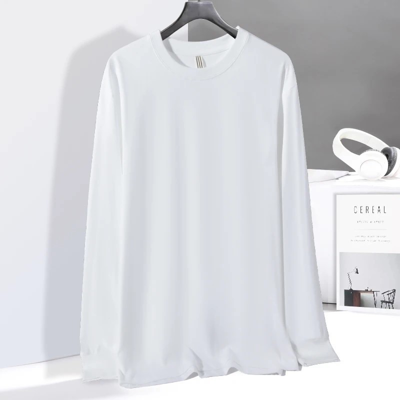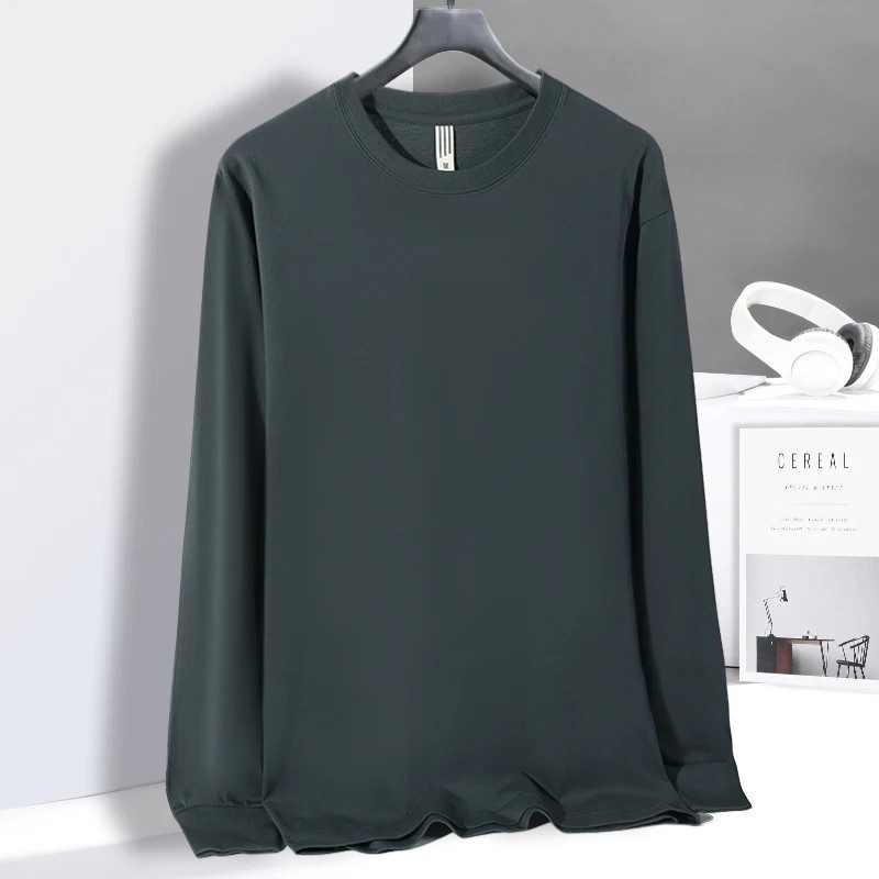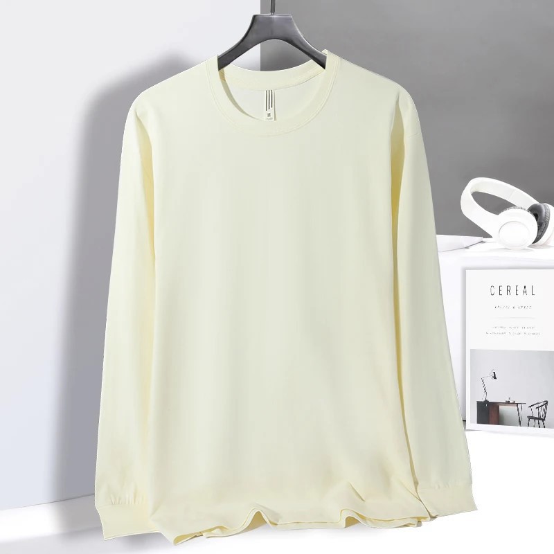 새로운 230g 순수 코튼 솔리드 컬러 오프 숄더 라운드 넥 긴팔 티셔츠 남성용 편안한 루즈 프린트 트렌디 브랜드 바닥 셔츠 프린트