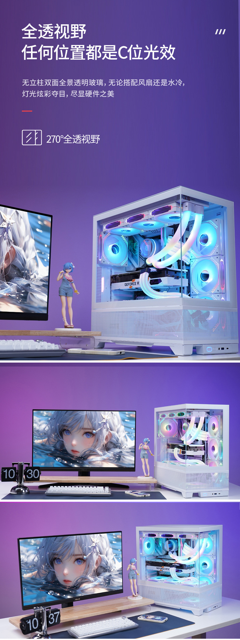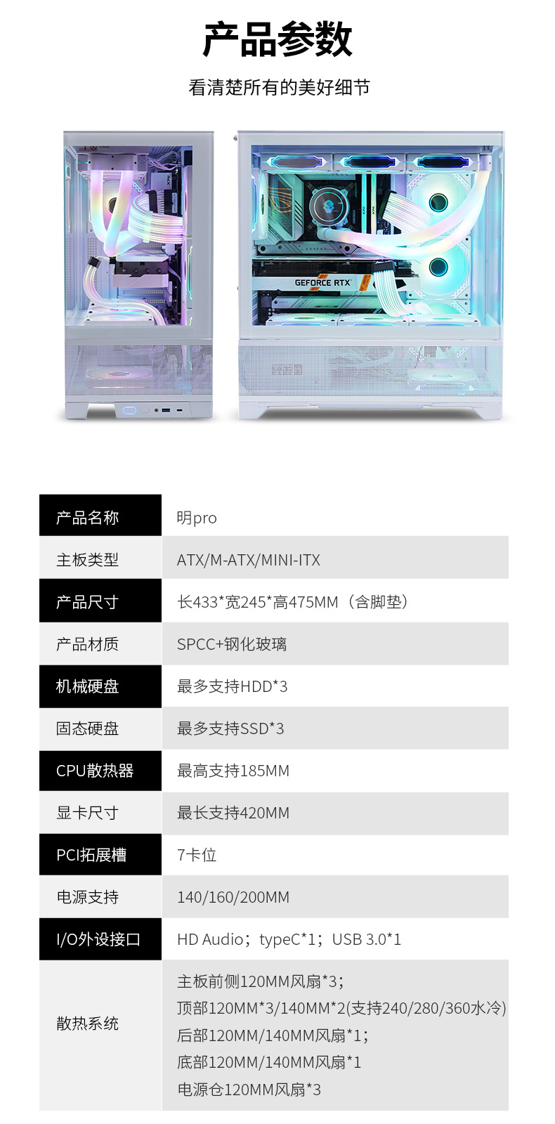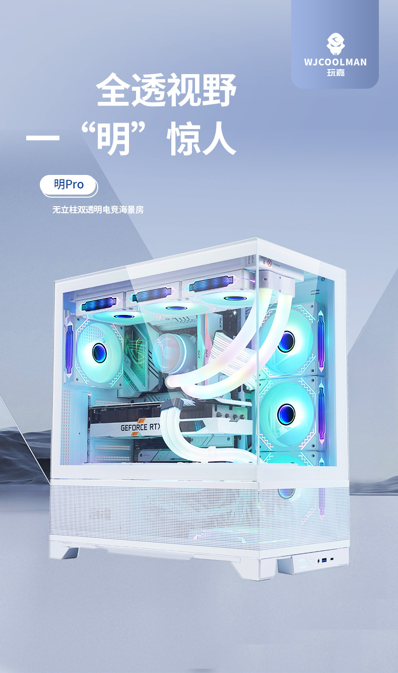 明PRO透明机柜CPU服务器机箱无立柱双面钢化玻璃电脑机箱