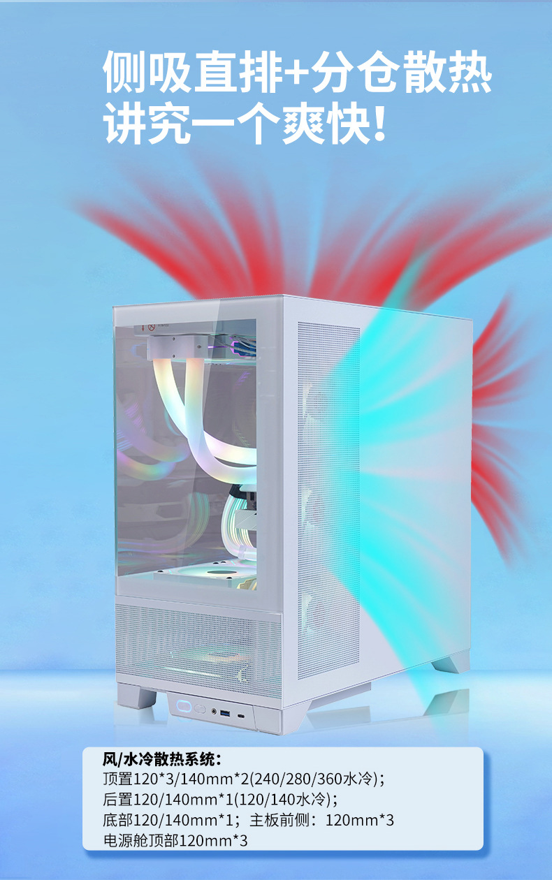 국경 간 데스크톱 컴퓨터 게임 ATX 섀시 360 수냉식 섀시 시뷰 룸 사이드 스루 USB3.0 섀시