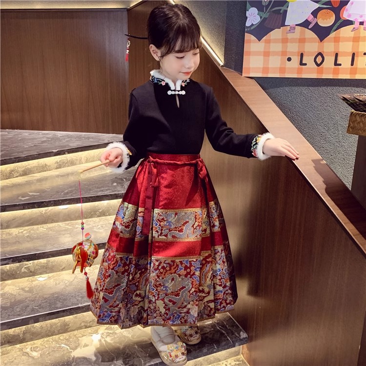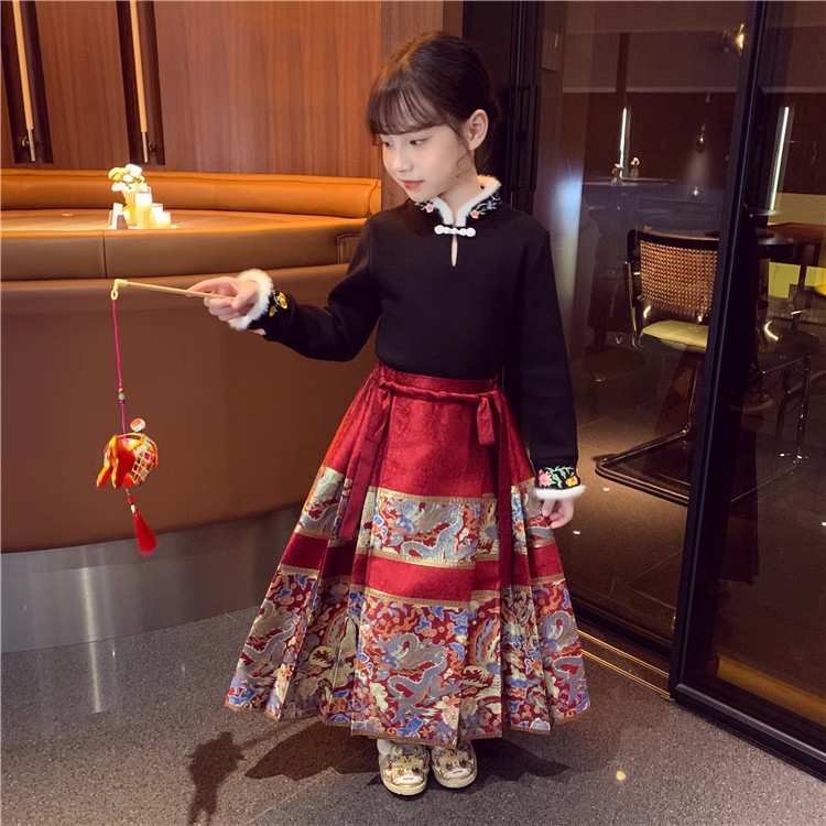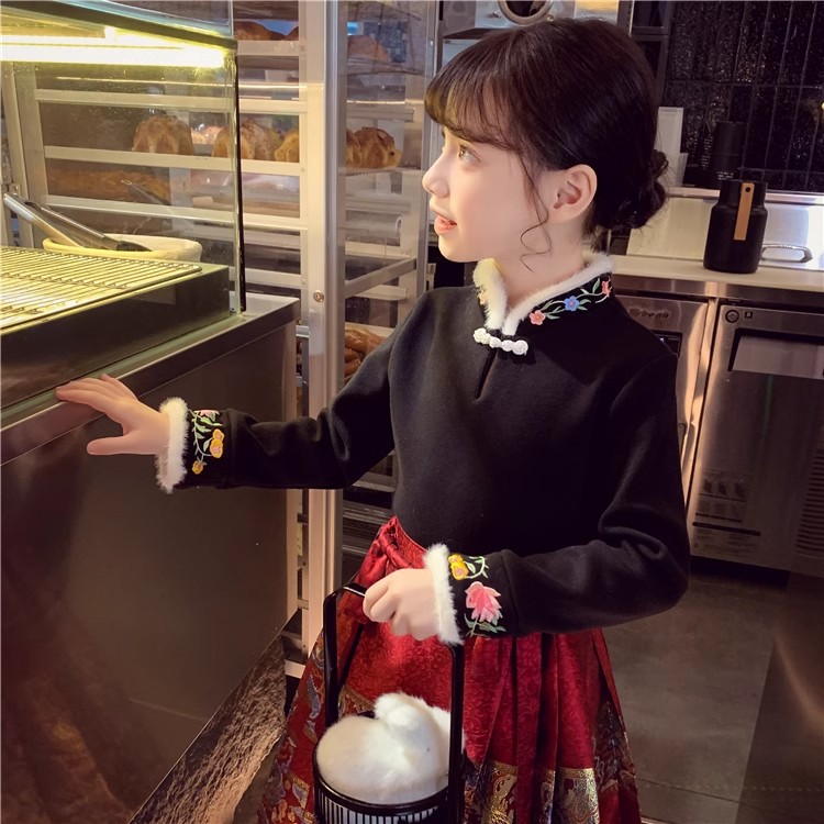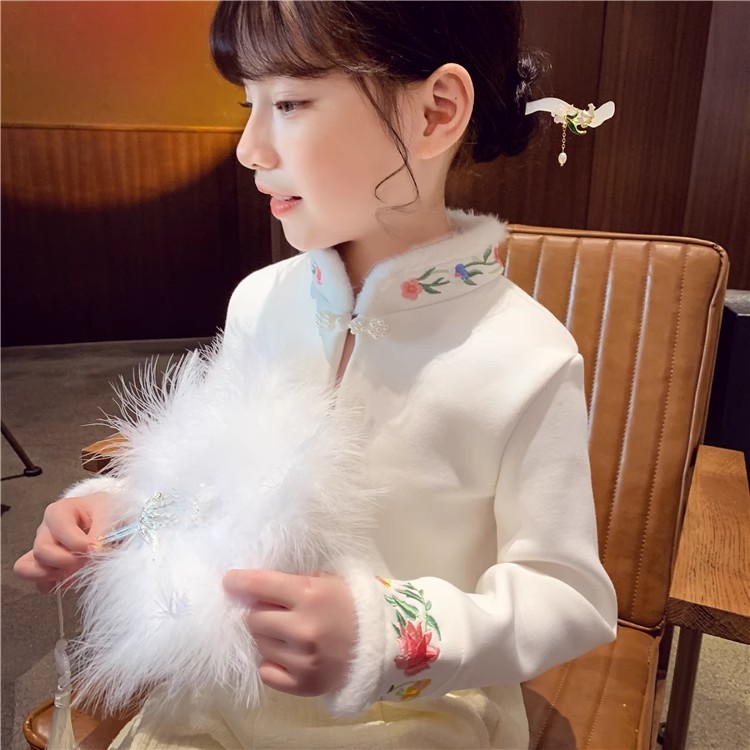 소녀 중국 스타일 자수 최고 중국 스타일 어린 소녀 기모 바닥 셔츠 어린이 티셔츠 겨울 옷 서양식 새로운스토어 가기