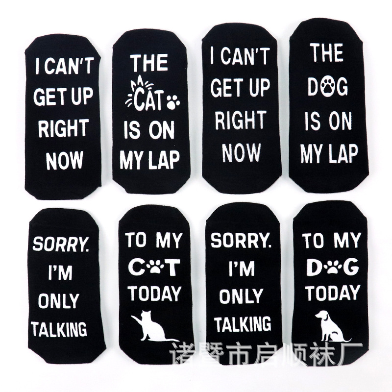 재고 유럽과 미국의 국경 간 인기있는 고양이와 개 시리즈 중반 송아지 면화 양말 단독 편지 미끄럼 방지 분배 창조적 인 바닥 양말