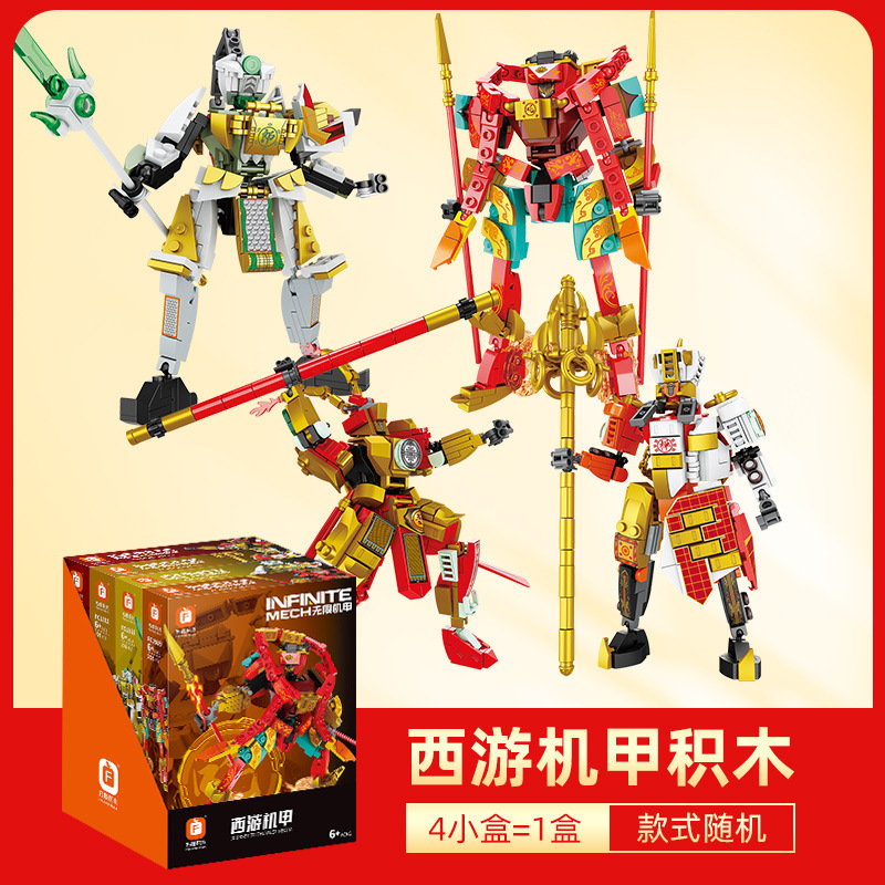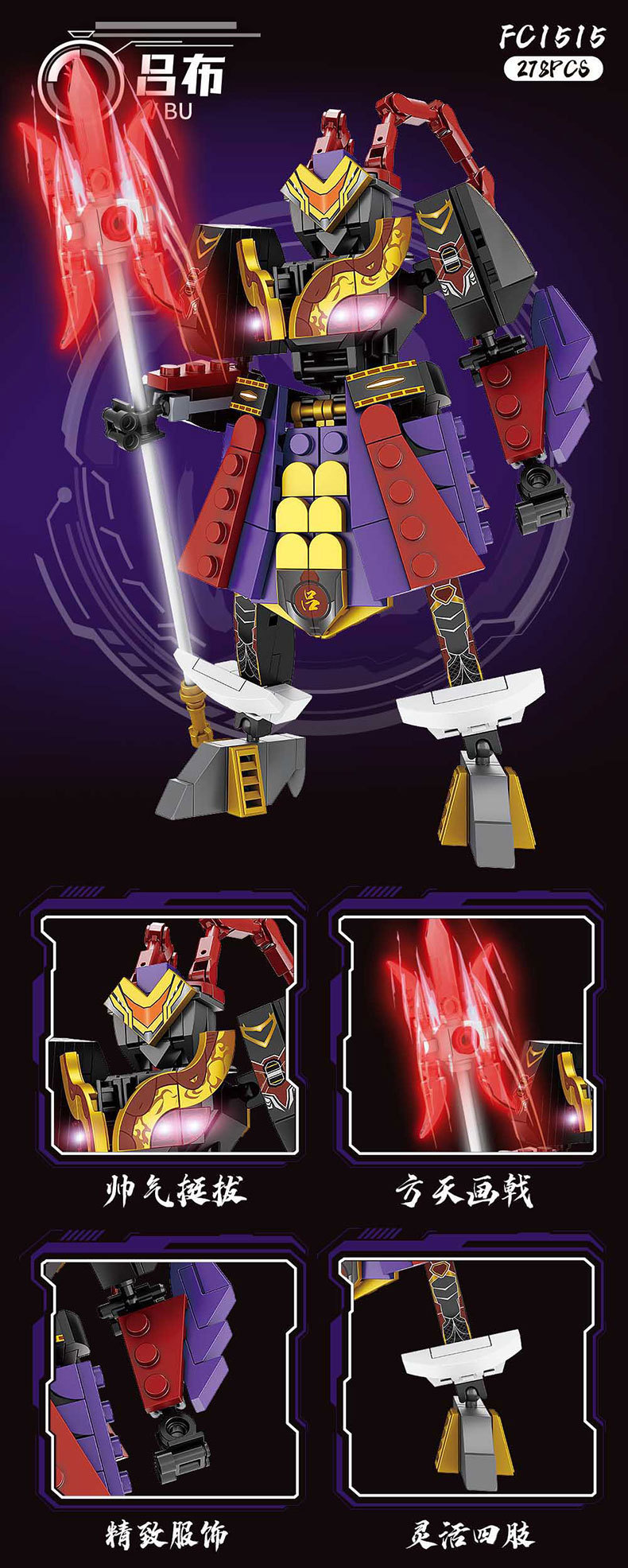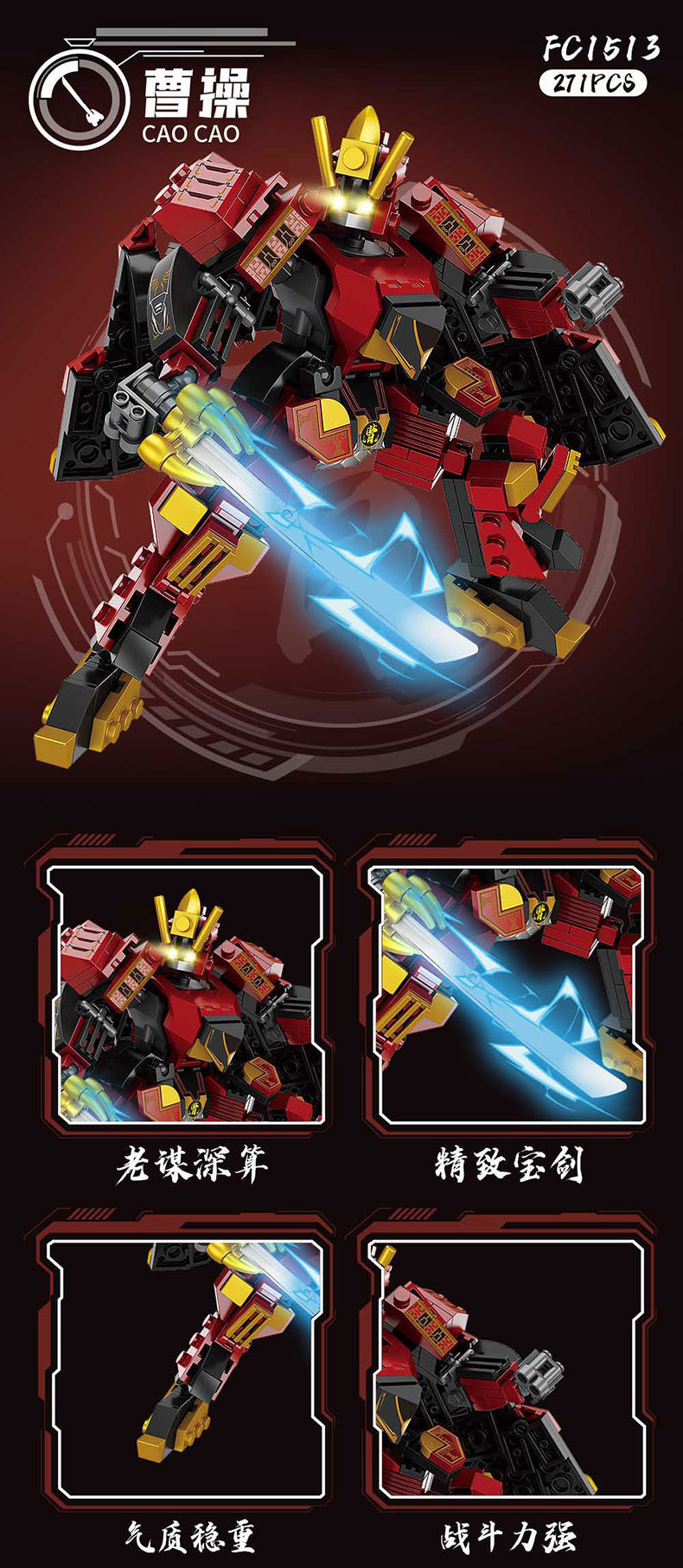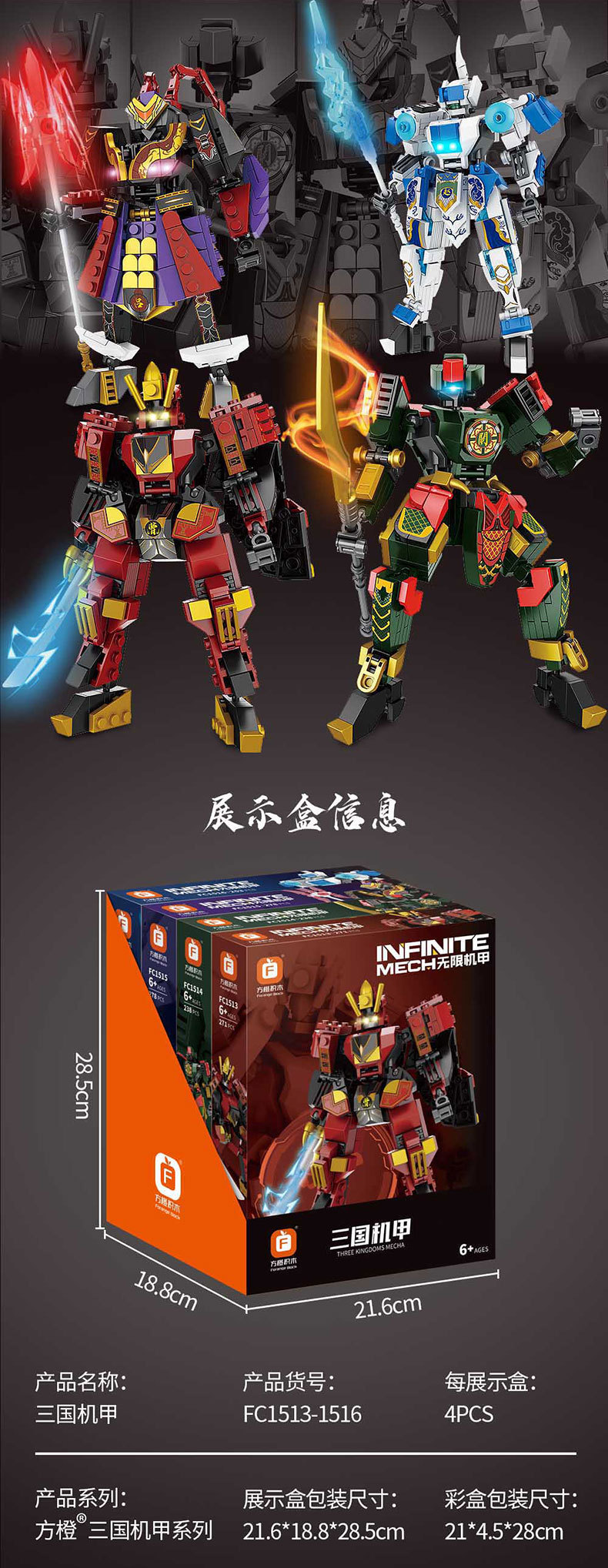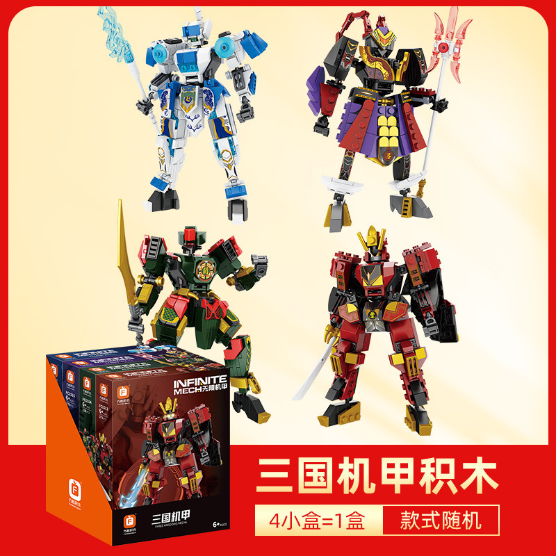 스퀘어 오렌지 빌딩 블록 세 왕국 메카 로맨스 Cao Cao Lv Bu Zhao Yun 퍼즐 모델 여행 서쪽 조립 장난감 선물스토어 가기