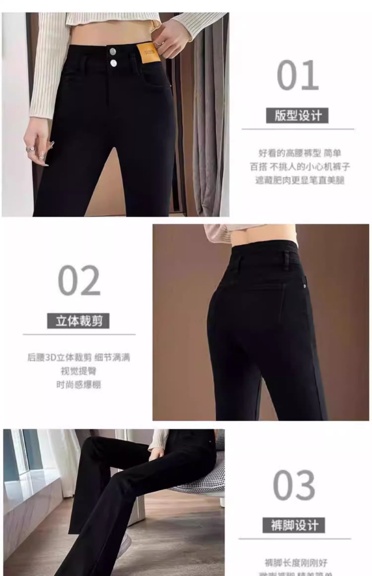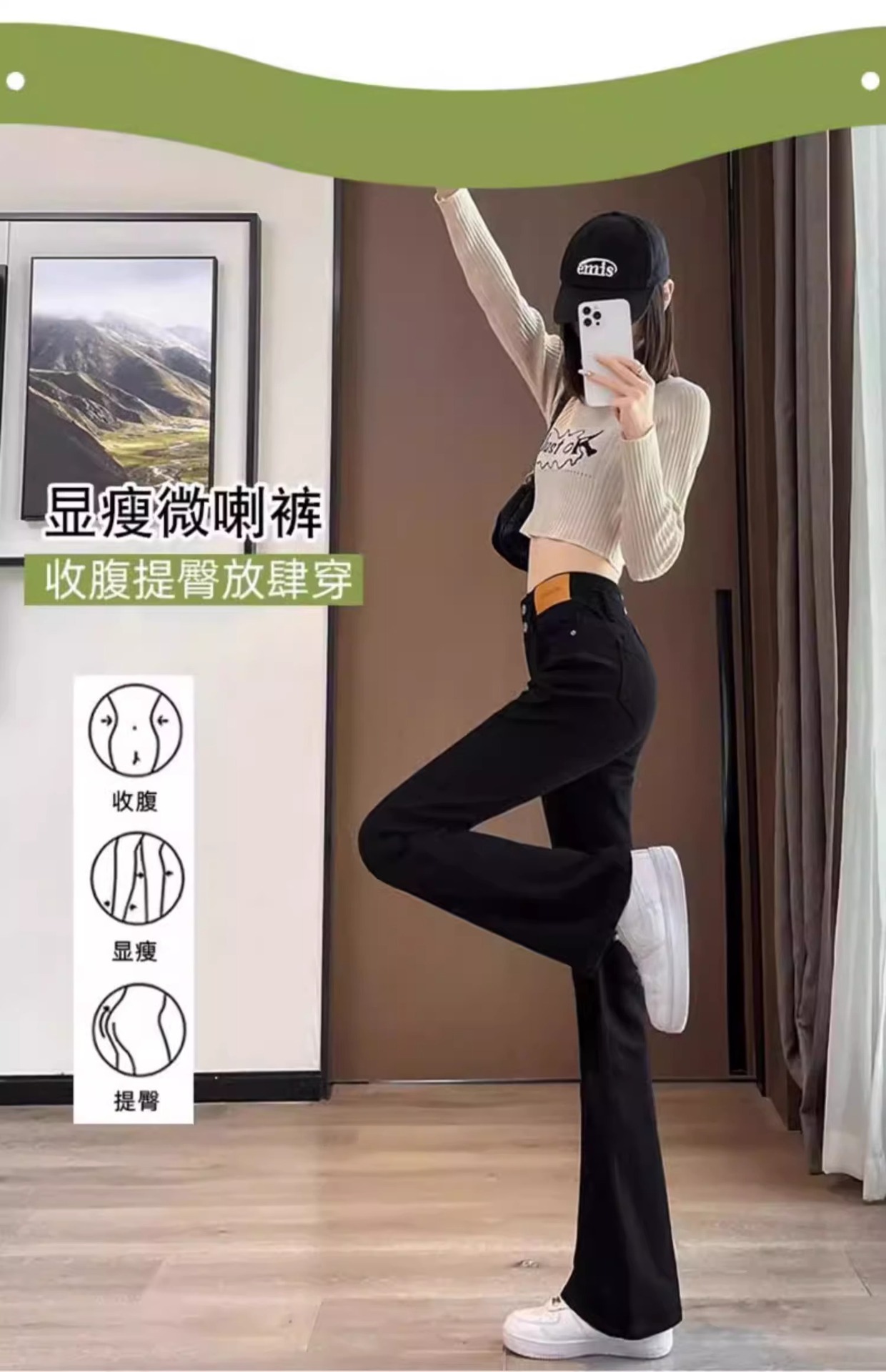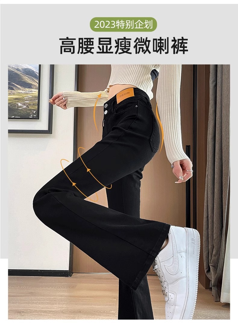 블랙 벨 바지 여자 2024 봄 유행 올매치 새로운 높은 허리 슬리밍 작은 데님 바지스토어 가기