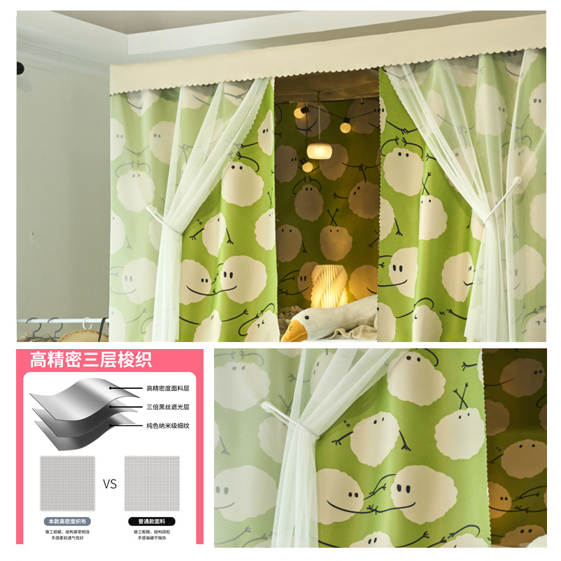 대학생 기숙사 강한 음영 침대 커튼 상단 및 하단 이층 남성과 여성 침실 하단 테이블 커튼 침대 인클로저 천으로 커튼 침대 커튼을 덮고 있습니다.