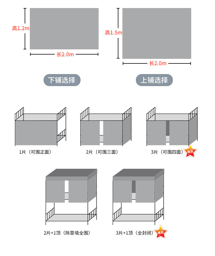 • 1.5 m 높은 커튼 [3 개 + 상단] 완전히 둘러싸인