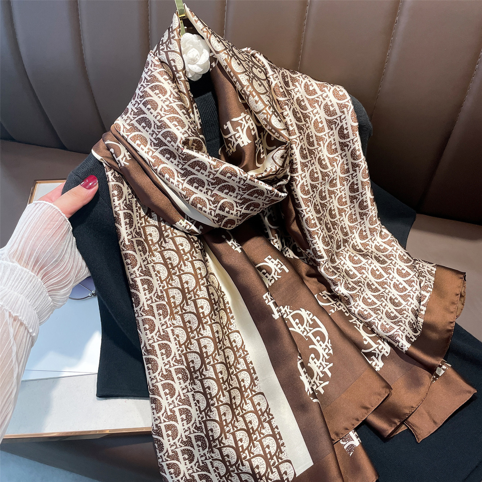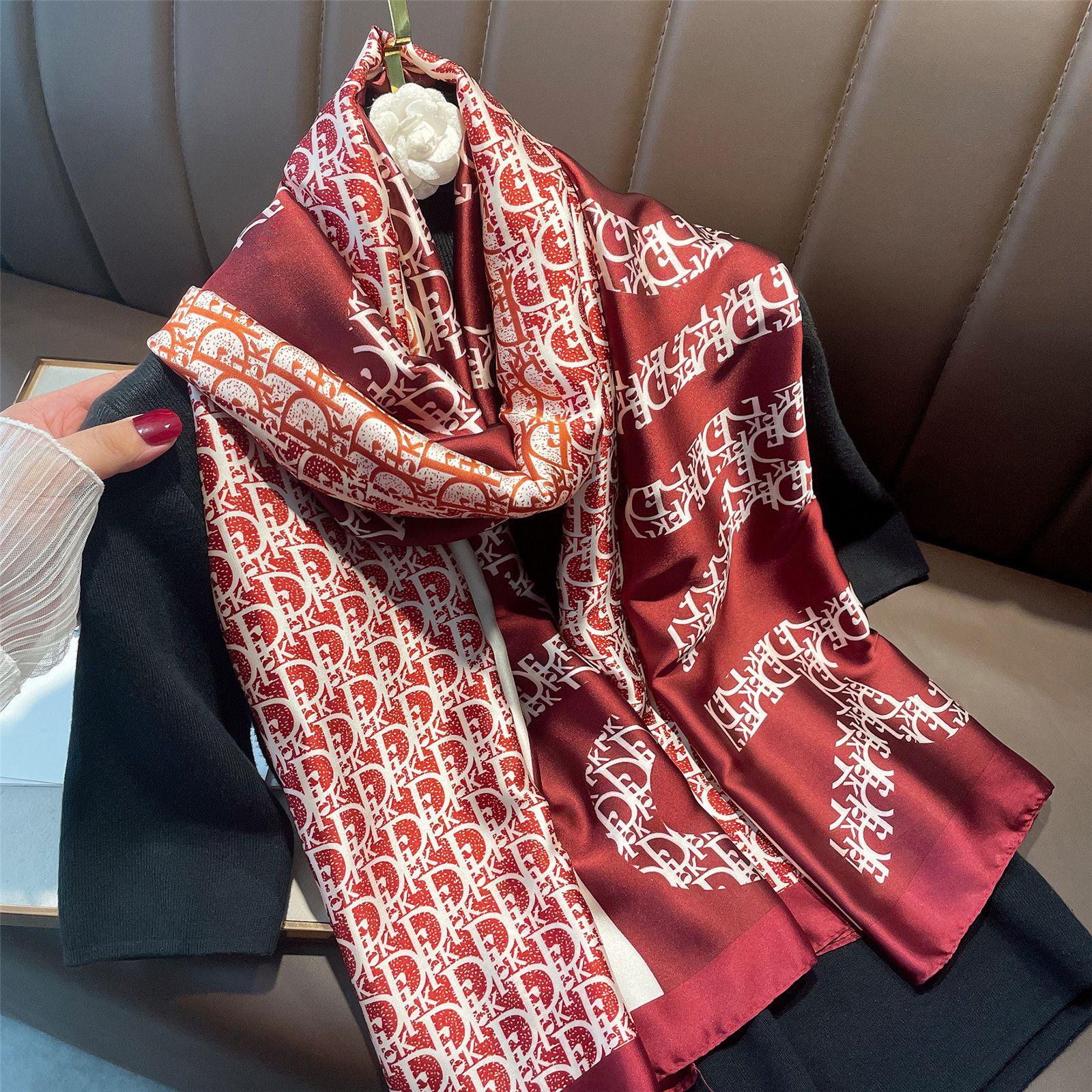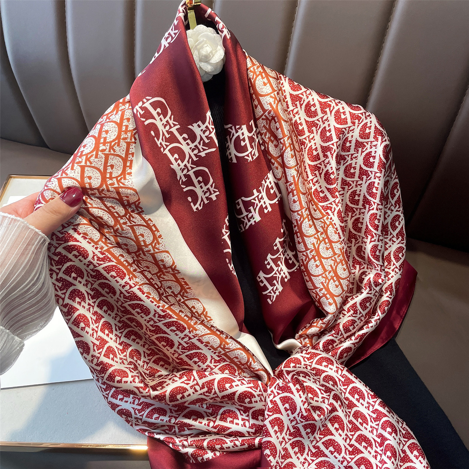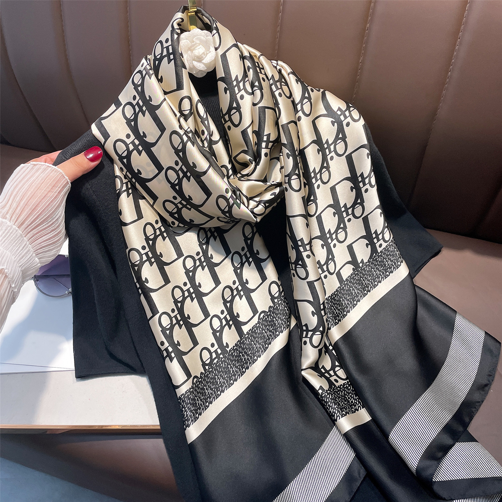 여성 실크 스카프 올 매치 얇은 스카프 봄과 가을 편지 패션 실크 느낌 스카프 목도리 이중 사용 겨울