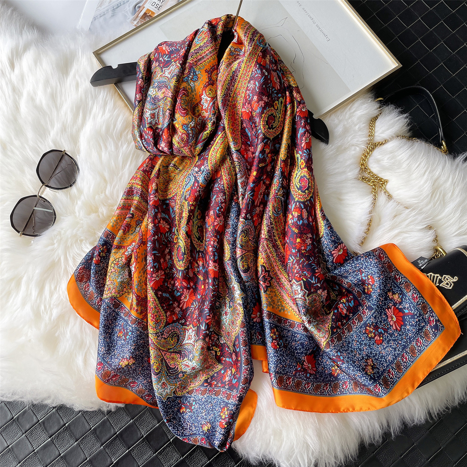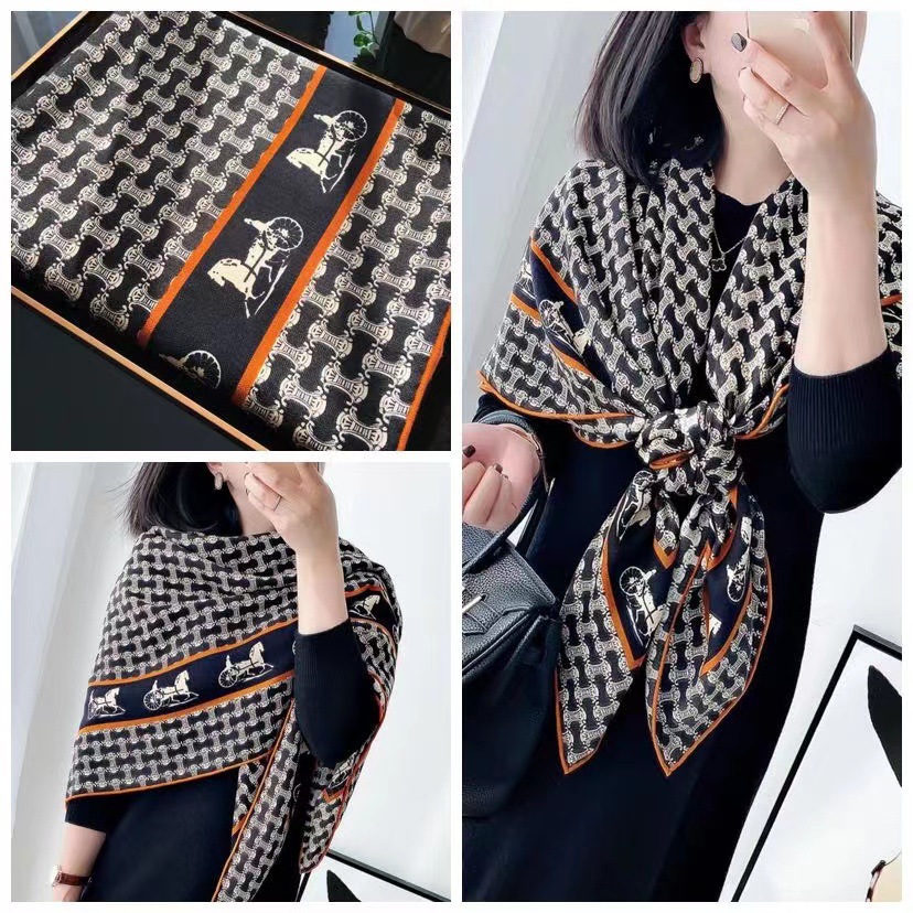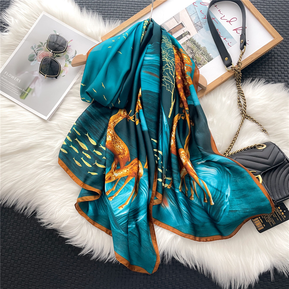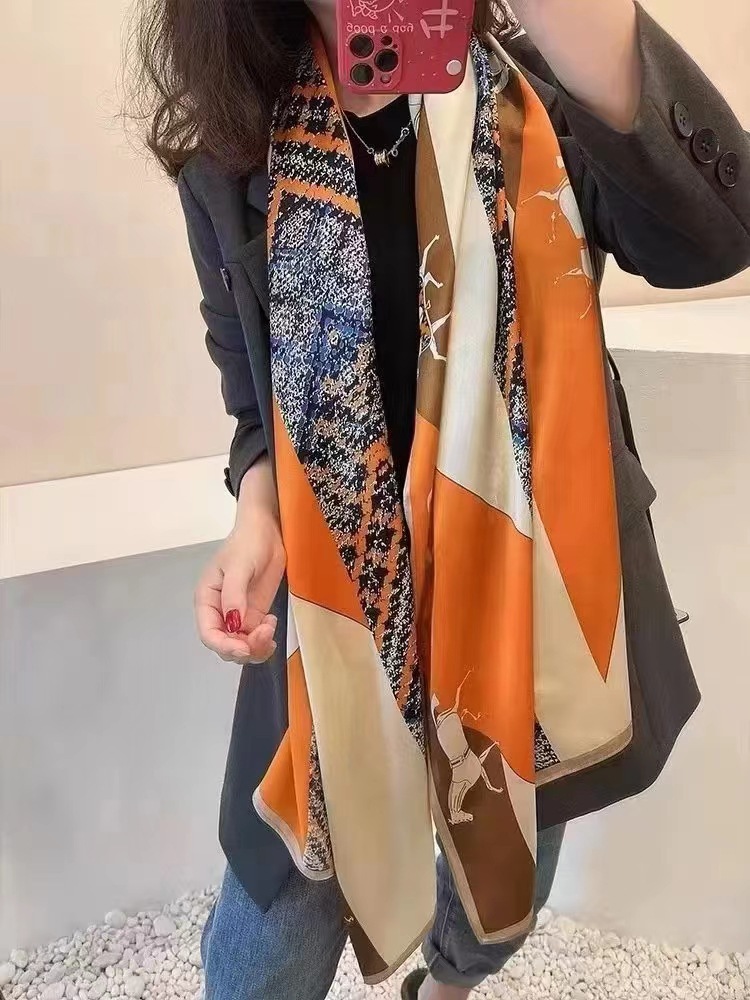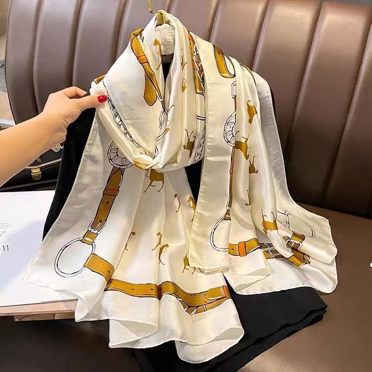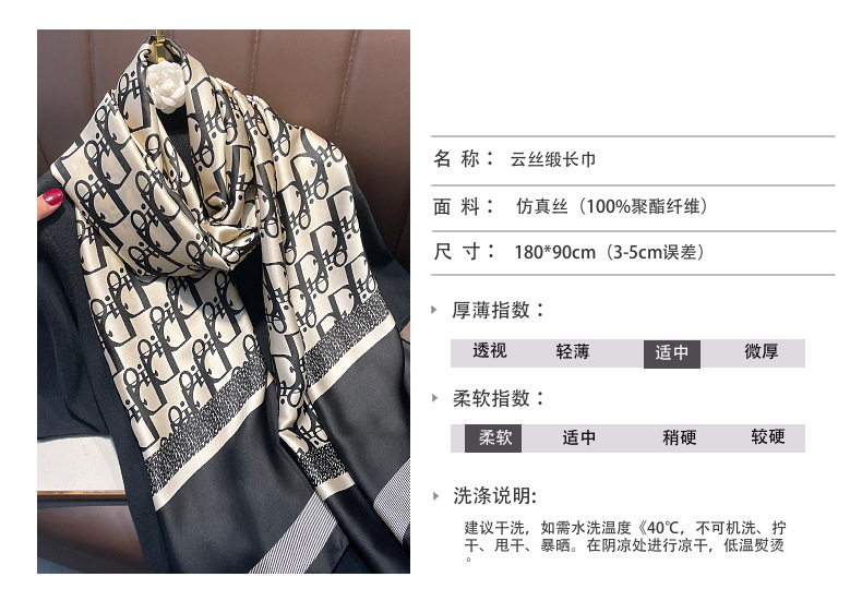 여성 실크 스카프 올 매치 얇은 스카프 봄과 가을 편지 패션 실크 느낌 스카프 목도리 이중 사용 겨울