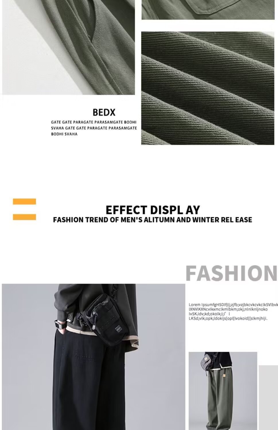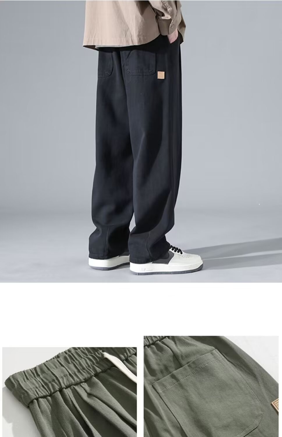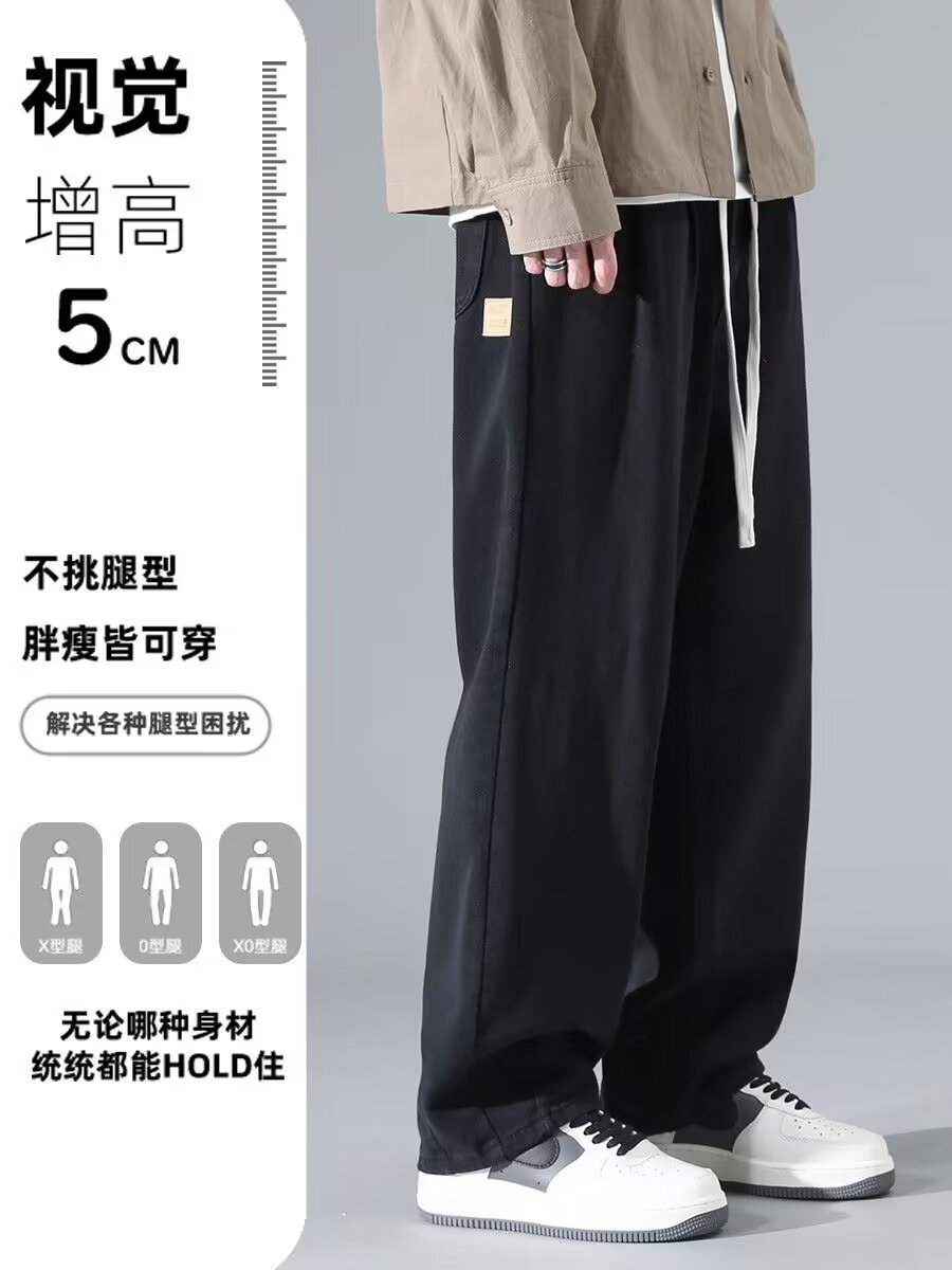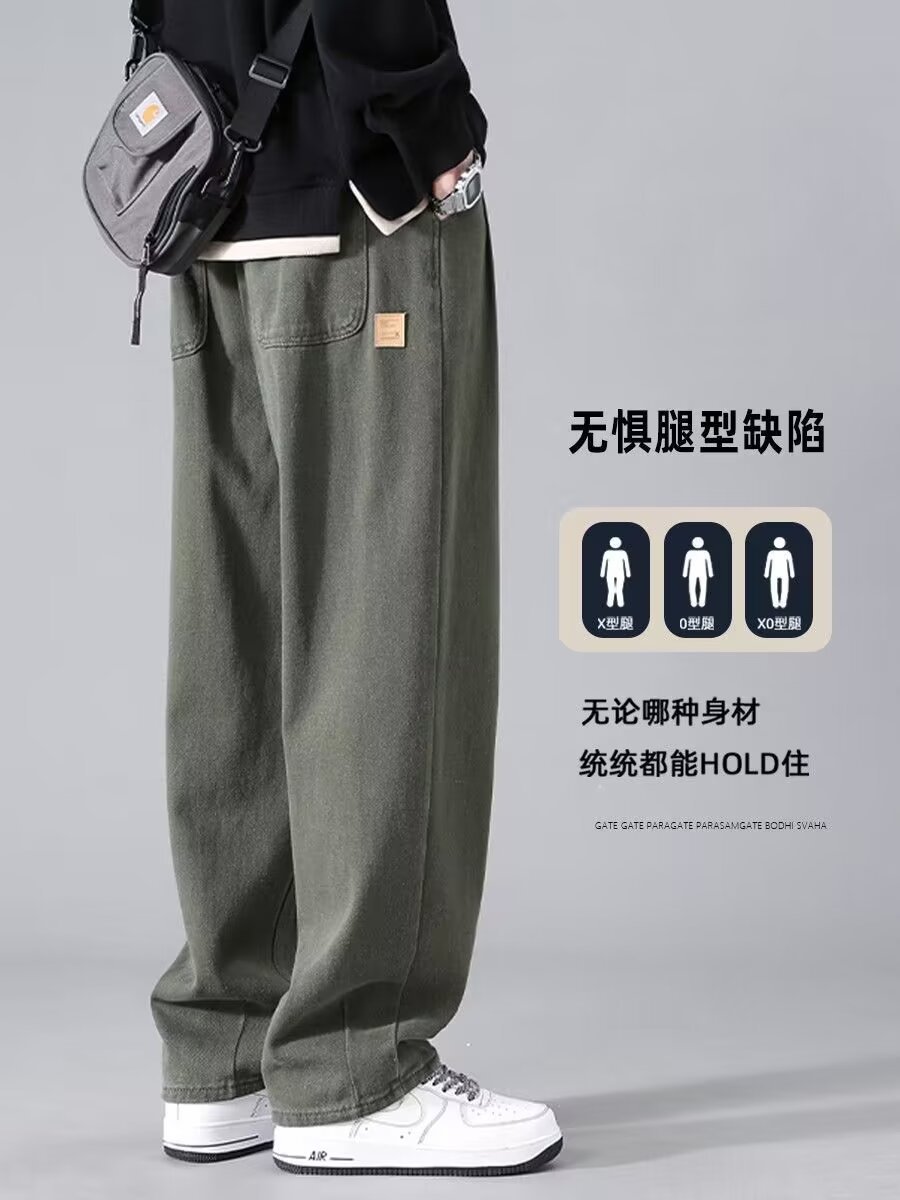 봄 2024 미국 하이 스트리트 넓은 다리 바지 남성 복고풍 캐주얼 바지 패션 브랜드 느슨한 스트레이트 바지