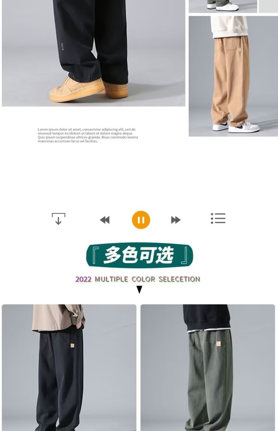 봄 2024 미국 하이 스트리트 넓은 다리 바지 남성 복고풍 캐주얼 바지 패션 브랜드 느슨한 스트레이트 바지스토어 가기