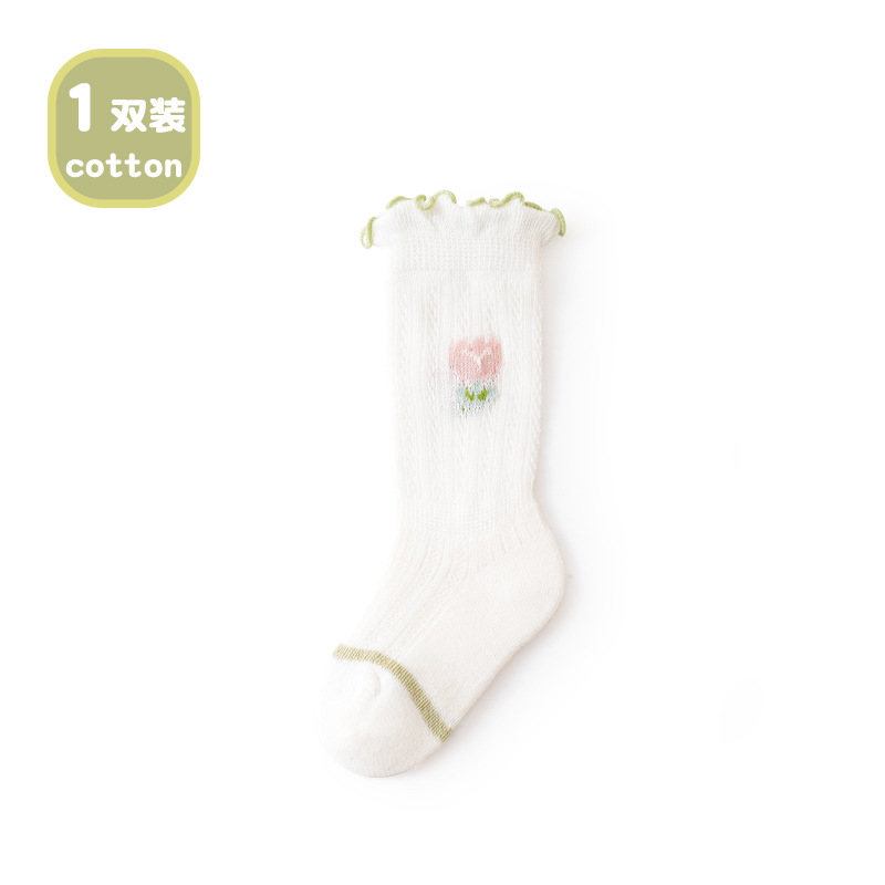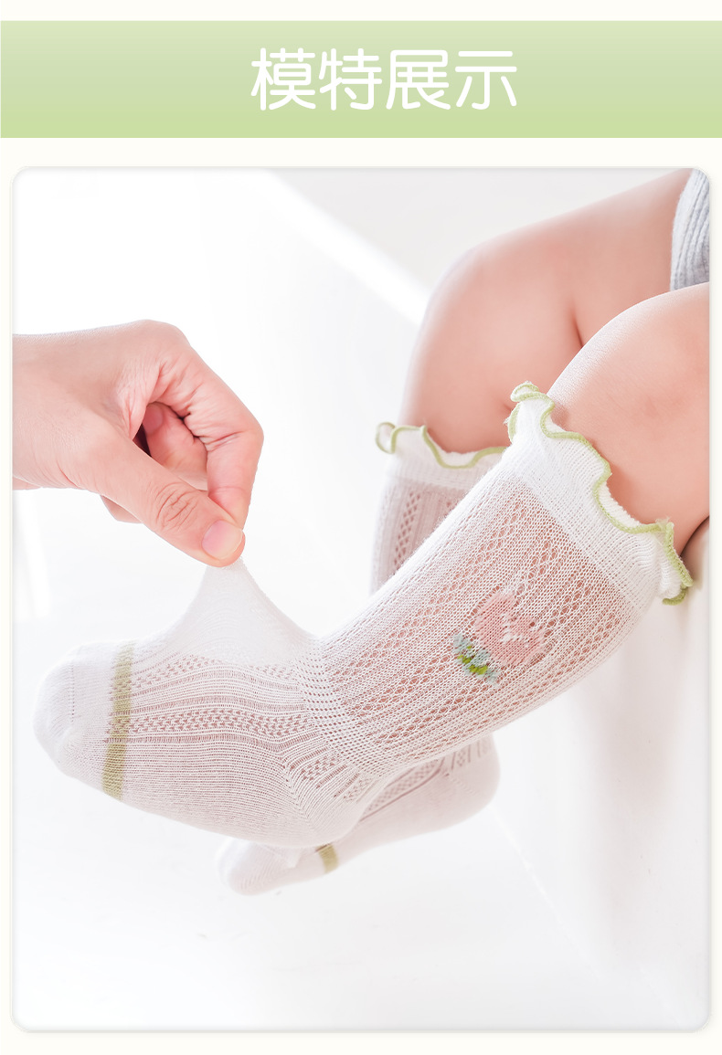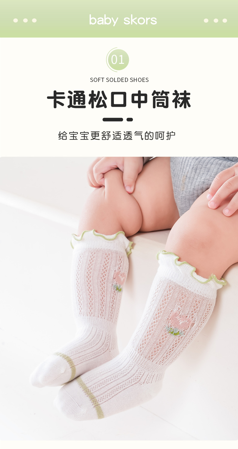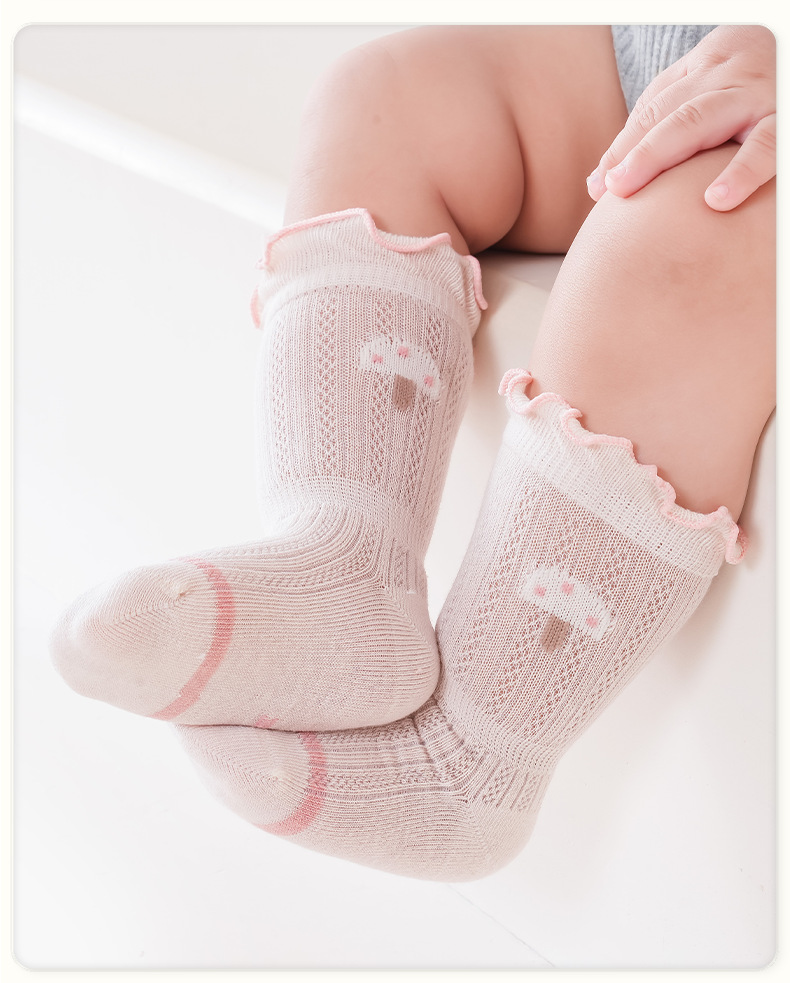 Liu Chengxing 봄과 여름 새로운 아기 메쉬 양말 얇은 만화 곰팡이 레이스 아기 중간 송아지 양말 뼈없는 느슨한 입