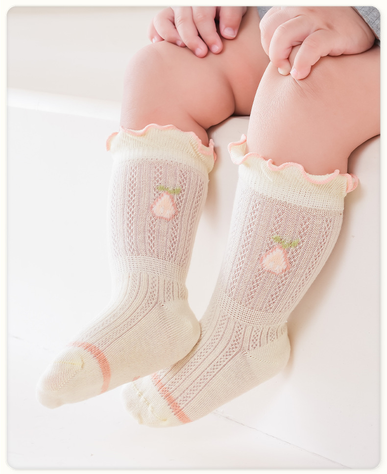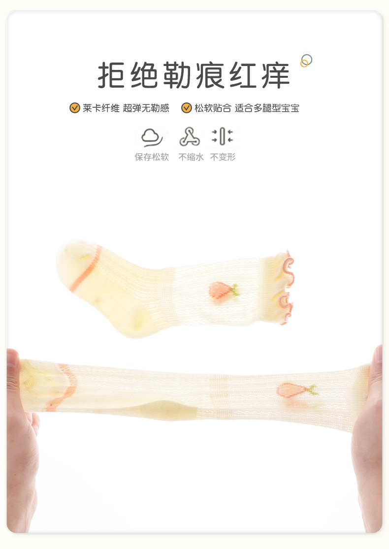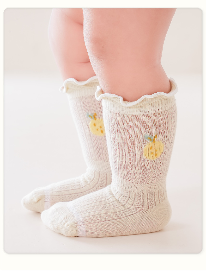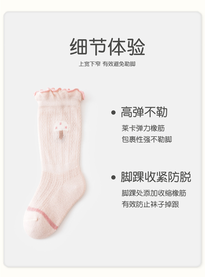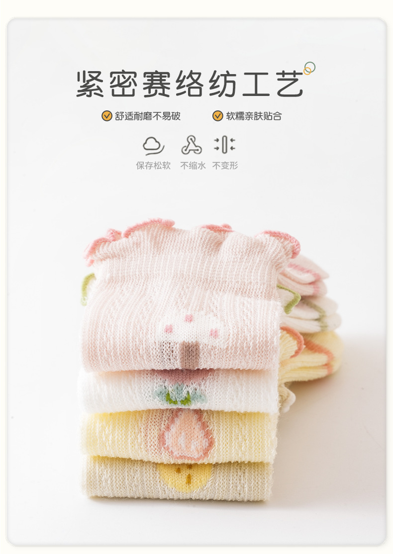 Liu Chengxing 봄과 여름 새로운 아기 메쉬 양말 얇은 만화 곰팡이 레이스 아기 중간 송아지 양말 뼈없는 느슨한 입