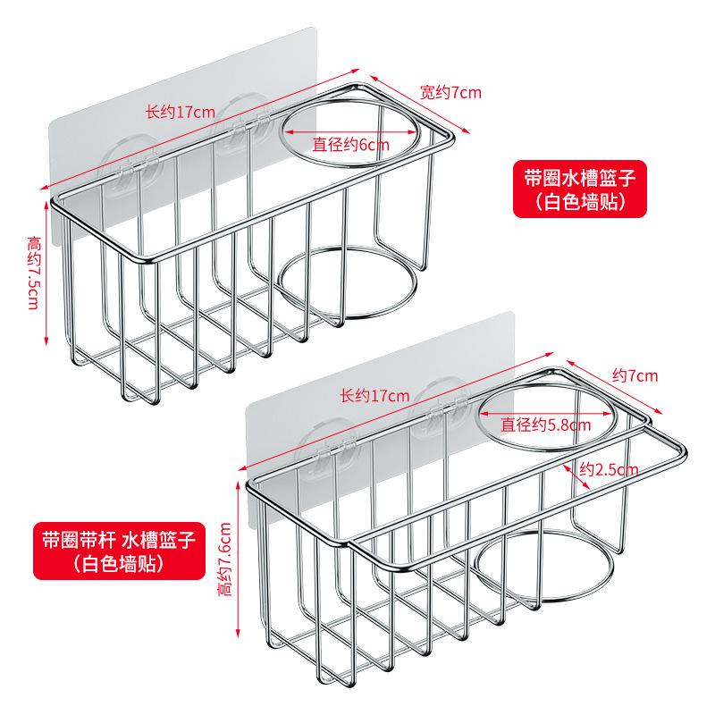 • 고리와 막대가 달린 싱크대 바구니(투명 벽 스티커)